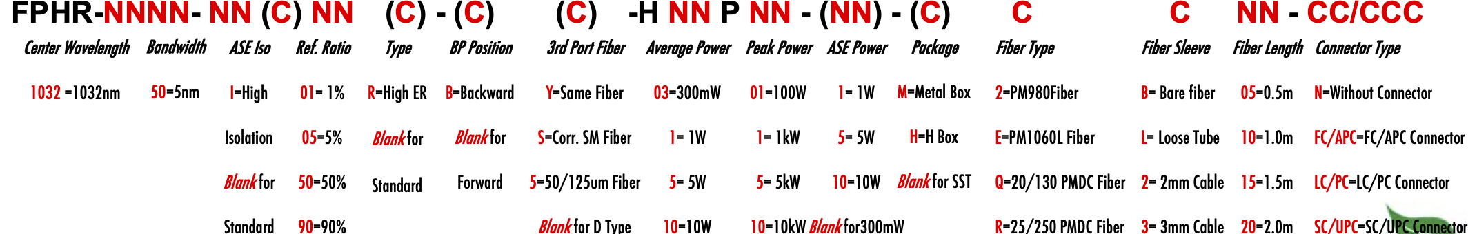 FPHR 1032nm Singlemode PM Fiber Bandpass Filter Tap coupler splitter Hybrid Bandwidth 5.0nm 5nm optical fiber bandpass filter with partial reflective fiber mirror or tap coupler or splitter hybrid device or bandstop filter filtre passe-bande à fibre optique avec miroir à fibre à réflexion partielle ou coupleur de prise ou dispositif hybride séparateur ou filtre coupe-bande Bandpassfilter aus optischen Fasern mit teilweise reflektierendem Faserspiegel oder Abzweigkoppler oder Splitter-Hybridgerät oder Bandsperrfilter filtro passa banda in fibra ottica con specchio in fibra riflettente parziale o accoppiatore a presa o dispositivo ibrido sdoppiatore o filtro elimina banda filtro passa-banda de fibra óptica com espelho de fibra reflexiva parcial ou acoplador de torneira ou dispositivo híbrido divisor ou filtro de parada de banda Filtro de paso de banda de fibra óptica con espejo de fibra reflectante parcial o acoplador de grifo o dispositivo híbrido divisor o filtro de parada de banda optinen kuitukaistanpäästösuodatin osittain heijastavalla kuitupeilillä tai hanan liittimellä tai jakajahybridilaitteella tai kaistanstop-suodattimella glasvezelbanddoorlaatfilter met gedeeltelijk reflecterende vezelspiegel of kraankoppeling of splitter hybride apparaat of bandstopfilter pásmový filtr s optickým vláknem s ?áste?ným reflexním vláknovým zrcadlem nebo odbo?ovací spojkou nebo rozbo?ovacím hybridním za?ízením nebo pásmovým filtrem ?wiat?owodowy filtr pasmowo-przepustowy z cz??ciowo odblaskowym lustrem ?wiat?owodowym lub hybrydowe urz?dzenie sprz?gaj?ce lub rozdzielaj?ce lub filtr pasmowy optisk fiber båndpassfilter med delvis reflekterende fiberspeil eller tappkobling eller splitter hybrid enhet eller båndstoppfilter PM980 PM980XP PM980HP LMA 6/125um 10/125um 10/130um 12/130um 15/125um 15/130um 20/125um 20/130um 25/250um 30/250um SC Single Clad Cladding DC Double Clad or large mode area fiber fibre à simple gaine ou fibre à double gaine ou fibre à grande zone de mode ingle Clad-Faser oder Double Clad-Faser oder Large-Mode-Area-Faser ibra con revestimiento simple o fibra con revestimiento doble o fibra de área modal grande fibra de revestimento simples ou fibra de revestimento duplo ou fibra de área de modo grande ibra a rivestimento singolo o fibra a doppio rivestimento o fibra a grande area modale yksikerroksinen kuitu tai kaksinkertainen kuitu tai suurimuotoinen kuitu 2-port D Type 3-port Y Type 4-port X Type Type D à 2 ports Type Y à 3 ports Type X à 4 ports -Port-D-Typ 3-Port-Y-Typ 4-Port-X-Typ Tipo D de 2 puertos Tipo Y de 3 puertos Tipo X de 4 puertos Tipo D de 2 portas Tipo Y de 3 portas Tipo X de 4 portas ipo D a 2 porte Tipo Y a 3 porte Tipo X a 4 porte 2-porttinen D-tyyppi 3-porttinen Y-tyyppi 4-porttinen X-tyyppi Polarization Maintaining PM Extinction Ratio ER Panda tie maintien de la polarisation fibre panda ou cravate avec taux d'extinction polarisationserhaltende Panda- oder Bindefaser mit Extinktionsverhältnis polarización manteniendo panda o fibra de amarre con relación de extinción polarização mantendo a fibra panda ou tie com taxa de extinção polarizzazione mantenendo panda o legare fibra con rapporto di estinzione olarisaatiota ylläpitävä panda- tai sidekuitu ekstinktiosuhteella