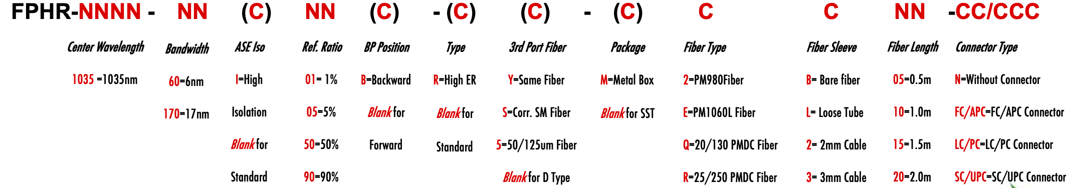 FPHR 1035nm Singlemode PM Fiber Bandpass Filter Tap coupler splitter Hybrid Bandwidth 6.0nm 17.0nm 6nm 17nm optical fiber bandpass filter with partial reflective fiber mirror or tap coupler or splitter hybrid device or bandstop filter filtre passe-bande à fibre optique avec miroir à fibre à réflexion partielle ou coupleur de prise ou dispositif hybride séparateur ou filtre coupe-bande Bandpassfilter aus optischen Fasern mit teilweise reflektierendem Faserspiegel oder Abzweigkoppler oder Splitter-Hybridgerät oder Bandsperrfilter filtro passa banda in fibra ottica con specchio in fibra riflettente parziale o accoppiatore a presa o dispositivo ibrido sdoppiatore o filtro elimina banda filtro passa-banda de fibra óptica com espelho de fibra reflexiva parcial ou acoplador de torneira ou dispositivo híbrido divisor ou filtro de parada de banda Filtro de paso de banda de fibra óptica con espejo de fibra reflectante parcial o acoplador de grifo o dispositivo híbrido divisor o filtro de parada de banda optinen kuitukaistanpäästösuodatin osittain heijastavalla kuitupeilillä tai hanan liittimellä tai jakajahybridilaitteella tai kaistanstop-suodattimella glasvezelbanddoorlaatfilter met gedeeltelijk reflecterende vezelspiegel of kraankoppeling of splitter hybride apparaat of bandstopfilter pásmový filtr s optickým vláknem s ?áste?ným reflexním vláknovým zrcadlem nebo odbo?ovací spojkou nebo rozbo?ovacím hybridním za?ízením nebo pásmovým filtrem ?wiat?owodowy filtr pasmowo-przepustowy z cz??ciowo odblaskowym lustrem ?wiat?owodowym lub hybrydowe urz?dzenie sprz?gaj?ce lub rozdzielaj?ce lub filtr pasmowy optisk fiber båndpassfilter med delvis reflekterende fiberspeil eller tappkobling eller splitter hybrid enhet eller båndstoppfilter PM980 PM980XP PM980HP LMA 6/125um 10/125um 10/130um 12/130um 15/125um 15/130um 20/125um 20/130um 25/250um 30/250um SC Single Clad Cladding DC Double Clad or large mode area fiber fibre à simple gaine ou fibre à double gaine ou fibre à grande zone de mode ingle Clad-Faser oder Double Clad-Faser oder Large-Mode-Area-Faser ibra con revestimiento simple o fibra con revestimiento doble o fibra de área modal grande fibra de revestimento simples ou fibra de revestimento duplo ou fibra de área de modo grande ibra a rivestimento singolo o fibra a doppio rivestimento o fibra a grande area modale yksikerroksinen kuitu tai kaksinkertainen kuitu tai suurimuotoinen kuitu 2-port D Type 3-port Y Type 4-port X Type Type D à 2 ports Type Y à 3 ports Type X à 4 ports -Port-D-Typ 3-Port-Y-Typ 4-Port-X-Typ Tipo D de 2 puertos Tipo Y de 3 puertos Tipo X de 4 puertos Tipo D de 2 portas Tipo Y de 3 portas Tipo X de 4 portas ipo D a 2 porte Tipo Y a 3 porte Tipo X a 4 porte 2-porttinen D-tyyppi 3-porttinen Y-tyyppi 4-porttinen X-tyyppi Polarization Maintaining PM Extinction Ratio ER Panda tie maintien de la polarisation fibre panda ou cravate avec taux d'extinction polarisationserhaltende Panda- oder Bindefaser mit Extinktionsverhältnis polarización manteniendo panda o fibra de amarre con relación de extinción polarização mantendo a fibra panda ou tie com taxa de extinção polarizzazione mantenendo panda o legare fibra con rapporto di estinzione olarisaatiota ylläpitävä panda- tai sidekuitu ekstinktiosuhteella