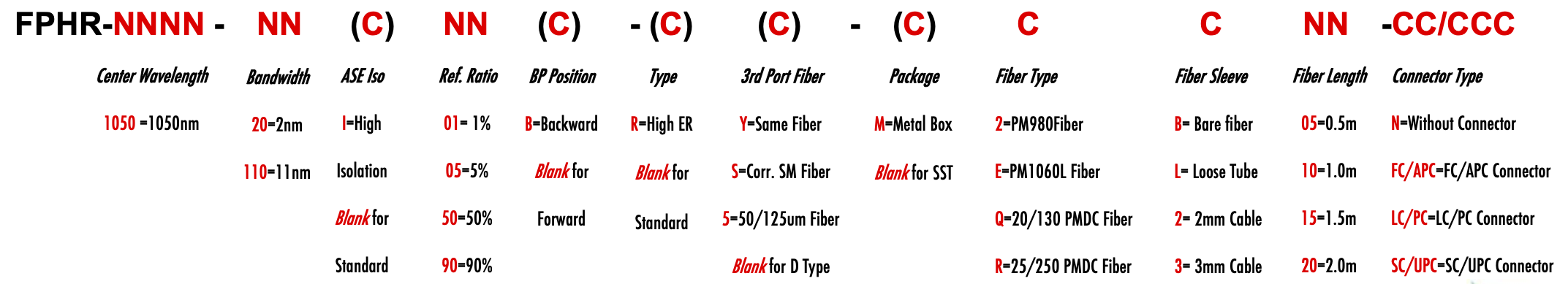 FPHR 1050nm Singlemode PM Fiber Bandpass Filter Tap coupler splitter Hybrid Bandwidth 2.0nm 11.0nm 2nm 11nm optical fiber bandpass filter with partial reflective fiber mirror or tap coupler or splitter hybrid device or bandstop filter filtre passe-bande à fibre optique avec miroir à fibre à réflexion partielle ou coupleur de prise ou dispositif hybride séparateur ou filtre coupe-bande Bandpassfilter aus optischen Fasern mit teilweise reflektierendem Faserspiegel oder Abzweigkoppler oder Splitter-Hybridgerät oder Bandsperrfilter filtro passa banda in fibra ottica con specchio in fibra riflettente parziale o accoppiatore a presa o dispositivo ibrido sdoppiatore o filtro elimina banda filtro passa-banda de fibra óptica com espelho de fibra reflexiva parcial ou acoplador de torneira ou dispositivo híbrido divisor ou filtro de parada de banda Filtro de paso de banda de fibra óptica con espejo de fibra reflectante parcial o acoplador de grifo o dispositivo híbrido divisor o filtro de parada de banda optinen kuitukaistanpäästösuodatin osittain heijastavalla kuitupeilillä tai hanan liittimellä tai jakajahybridilaitteella tai kaistanstop-suodattimella glasvezelbanddoorlaatfilter met gedeeltelijk reflecterende vezelspiegel of kraankoppeling of splitter hybride apparaat of bandstopfilter pásmový filtr s optickým vláknem s ?áste?ným reflexním vláknovým zrcadlem nebo odbo?ovací spojkou nebo rozbo?ovacím hybridním za?ízením nebo pásmovým filtrem ?wiat?owodowy filtr pasmowo-przepustowy z cz??ciowo odblaskowym lustrem ?wiat?owodowym lub hybrydowe urz?dzenie sprz?gaj?ce lub rozdzielaj?ce lub filtr pasmowy optisk fiber båndpassfilter med delvis reflekterende fiberspeil eller tappkobling eller splitter hybrid enhet eller båndstoppfilter PM980 PM980XP PM980HP LMA 6/125um 10/125um 10/130um 12/130um 15/125um 15/130um 20/125um 20/130um 25/250um 30/250um SC Single Clad Cladding DC Double Clad or large mode area fiber fibre à simple gaine ou fibre à double gaine ou fibre à grande zone de mode ingle Clad-Faser oder Double Clad-Faser oder Large-Mode-Area-Faser ibra con revestimiento simple o fibra con revestimiento doble o fibra de área modal grande fibra de revestimento simples ou fibra de revestimento duplo ou fibra de área de modo grande ibra a rivestimento singolo o fibra a doppio rivestimento o fibra a grande area modale yksikerroksinen kuitu tai kaksinkertainen kuitu tai suurimuotoinen kuitu 2-port D Type 3-port Y Type 4-port X Type Type D à 2 ports Type Y à 3 ports Type X à 4 ports -Port-D-Typ 3-Port-Y-Typ 4-Port-X-Typ Tipo D de 2 puertos Tipo Y de 3 puertos Tipo X de 4 puertos Tipo D de 2 portas Tipo Y de 3 portas Tipo X de 4 portas ipo D a 2 porte Tipo Y a 3 porte Tipo X a 4 porte 2-porttinen D-tyyppi 3-porttinen Y-tyyppi 4-porttinen X-tyyppi Polarization Maintaining PM Extinction Ratio ER Panda tie maintien de la polarisation fibre panda ou cravate avec taux d'extinction polarisationserhaltende Panda- oder Bindefaser mit Extinktionsverhältnis polarización manteniendo panda o fibra de amarre con relación de extinción polarização mantendo a fibra panda ou tie com taxa de extinção polarizzazione mantenendo panda o legare fibra con rapporto di estinzione olarisaatiota ylläpitävä panda- tai sidekuitu ekstinktiosuhteella