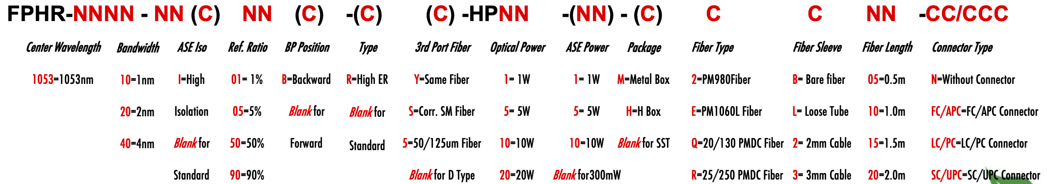 FPHR 1053nm Singlemode PM Fiber Bandpass Filter Tap coupler splitter Hybrid Bandwidth 1.0nm 2.0nm 4.0nm 1nm 2nm 4nm optical fiber bandpass filter with partial reflective fiber mirror or tap coupler or splitter hybrid device or bandstop filter filtre passe-bande à fibre optique avec miroir à fibre à réflexion partielle ou coupleur de prise ou dispositif hybride séparateur ou filtre coupe-bande Bandpassfilter aus optischen Fasern mit teilweise reflektierendem Faserspiegel oder Abzweigkoppler oder Splitter-Hybridgerät oder Bandsperrfilter filtro passa banda in fibra ottica con specchio in fibra riflettente parziale o accoppiatore a presa o dispositivo ibrido sdoppiatore o filtro elimina banda filtro passa-banda de fibra óptica com espelho de fibra reflexiva parcial ou acoplador de torneira ou dispositivo híbrido divisor ou filtro de parada de banda Filtro de paso de banda de fibra óptica con espejo de fibra reflectante parcial o acoplador de grifo o dispositivo híbrido divisor o filtro de parada de banda optinen kuitukaistanpäästösuodatin osittain heijastavalla kuitupeilillä tai hanan liittimellä tai jakajahybridilaitteella tai kaistanstop-suodattimella glasvezelbanddoorlaatfilter met gedeeltelijk reflecterende vezelspiegel of kraankoppeling of splitter hybride apparaat of bandstopfilter pásmový filtr s optickým vláknem s ?áste?ným reflexním vláknovým zrcadlem nebo odbo?ovací spojkou nebo rozbo?ovacím hybridním za?ízením nebo pásmovým filtrem ?wiat?owodowy filtr pasmowo-przepustowy z cz??ciowo odblaskowym lustrem ?wiat?owodowym lub hybrydowe urz?dzenie sprz?gaj?ce lub rozdzielaj?ce lub filtr pasmowy optisk fiber båndpassfilter med delvis reflekterende fiberspeil eller tappkobling eller splitter hybrid enhet eller båndstoppfilter PM980 PM980XP PM980HP LMA 6/125um 10/125um 10/130um 12/130um 15/125um 15/130um 20/125um 20/130um 25/250um 30/250um SC Single Clad Cladding DC Double Clad or large mode area fiber fibre à simple gaine ou fibre à double gaine ou fibre à grande zone de mode ingle Clad-Faser oder Double Clad-Faser oder Large-Mode-Area-Faser ibra con revestimiento simple o fibra con revestimiento doble o fibra de área modal grande fibra de revestimento simples ou fibra de revestimento duplo ou fibra de área de modo grande ibra a rivestimento singolo o fibra a doppio rivestimento o fibra a grande area modale yksikerroksinen kuitu tai kaksinkertainen kuitu tai suurimuotoinen kuitu 2-port D Type 3-port Y Type 4-port X Type Type D à 2 ports Type Y à 3 ports Type X à 4 ports -Port-D-Typ 3-Port-Y-Typ 4-Port-X-Typ Tipo D de 2 puertos Tipo Y de 3 puertos Tipo X de 4 puertos Tipo D de 2 portas Tipo Y de 3 portas Tipo X de 4 portas ipo D a 2 porte Tipo Y a 3 porte Tipo X a 4 porte 2-porttinen D-tyyppi 3-porttinen Y-tyyppi 4-porttinen X-tyyppi Polarization Maintaining PM Extinction Ratio ER Panda tie maintien de la polarisation fibre panda ou cravate avec taux d'extinction polarisationserhaltende Panda- oder Bindefaser mit Extinktionsverhältnis polarización manteniendo panda o fibra de amarre con relación de extinción polarização mantendo a fibra panda ou tie com taxa de extinção polarizzazione mantenendo panda o legare fibra con rapporto di estinzione olarisaatiota ylläpitävä panda- tai sidekuitu ekstinktiosuhteella