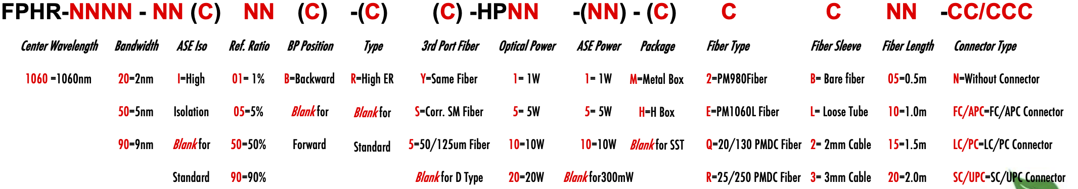 FPHR 1060nm Singlemode PM Fiber Bandpass Filter Tap coupler splitter Hybrid Bandwidth 2.0nm 5.0nm 9.0nm 2nm 5nm 9nm optical fiber bandpass filter with partial reflective fiber mirror or tap coupler or splitter hybrid device or bandstop filter filtre passe-bande à fibre optique avec miroir à fibre à réflexion partielle ou coupleur de prise ou dispositif hybride séparateur ou filtre coupe-bande Bandpassfilter aus optischen Fasern mit teilweise reflektierendem Faserspiegel oder Abzweigkoppler oder Splitter-Hybridgerät oder Bandsperrfilter filtro passa banda in fibra ottica con specchio in fibra riflettente parziale o accoppiatore a presa o dispositivo ibrido sdoppiatore o filtro elimina banda filtro passa-banda de fibra óptica com espelho de fibra reflexiva parcial ou acoplador de torneira ou dispositivo híbrido divisor ou filtro de parada de banda Filtro de paso de banda de fibra óptica con espejo de fibra reflectante parcial o acoplador de grifo o dispositivo híbrido divisor o filtro de parada de banda optinen kuitukaistanpäästösuodatin osittain heijastavalla kuitupeilillä tai hanan liittimellä tai jakajahybridilaitteella tai kaistanstop-suodattimella glasvezelbanddoorlaatfilter met gedeeltelijk reflecterende vezelspiegel of kraankoppeling of splitter hybride apparaat of bandstopfilter pásmový filtr s optickým vláknem s ?áste?ným reflexním vláknovým zrcadlem nebo odbo?ovací spojkou nebo rozbo?ovacím hybridním za?ízením nebo pásmovým filtrem ?wiat?owodowy filtr pasmowo-przepustowy z cz??ciowo odblaskowym lustrem ?wiat?owodowym lub hybrydowe urz?dzenie sprz?gaj?ce lub rozdzielaj?ce lub filtr pasmowy optisk fiber båndpassfilter med delvis reflekterende fiberspeil eller tappkobling eller splitter hybrid enhet eller båndstoppfilter PM980 PM980XP PM980HP LMA 6/125um 10/125um 10/130um 12/130um 15/125um 15/130um 20/125um 20/130um 25/250um 30/250um SC Single Clad Cladding DC Double Clad or large mode area fiber fibre à simple gaine ou fibre à double gaine ou fibre à grande zone de mode ingle Clad-Faser oder Double Clad-Faser oder Large-Mode-Area-Faser ibra con revestimiento simple o fibra con revestimiento doble o fibra de área modal grande fibra de revestimento simples ou fibra de revestimento duplo ou fibra de área de modo grande ibra a rivestimento singolo o fibra a doppio rivestimento o fibra a grande area modale yksikerroksinen kuitu tai kaksinkertainen kuitu tai suurimuotoinen kuitu 2-port D Type 3-port Y Type 4-port X Type Type D à 2 ports Type Y à 3 ports Type X à 4 ports -Port-D-Typ 3-Port-Y-Typ 4-Port-X-Typ Tipo D de 2 puertos Tipo Y de 3 puertos Tipo X de 4 puertos Tipo D de 2 portas Tipo Y de 3 portas Tipo X de 4 portas ipo D a 2 porte Tipo Y a 3 porte Tipo X a 4 porte 2-porttinen D-tyyppi 3-porttinen Y-tyyppi 4-porttinen X-tyyppi Polarization Maintaining PM Extinction Ratio ER Panda tie maintien de la polarisation fibre panda ou cravate avec taux d'extinction polarisationserhaltende Panda- oder Bindefaser mit Extinktionsverhältnis polarización manteniendo panda o fibra de amarre con relación de extinción polarização mantendo a fibra panda ou tie com taxa de extinção polarizzazione mantenendo panda o legare fibra con rapporto di estinzione olarisaatiota ylläpitävä panda- tai sidekuitu ekstinktiosuhteella