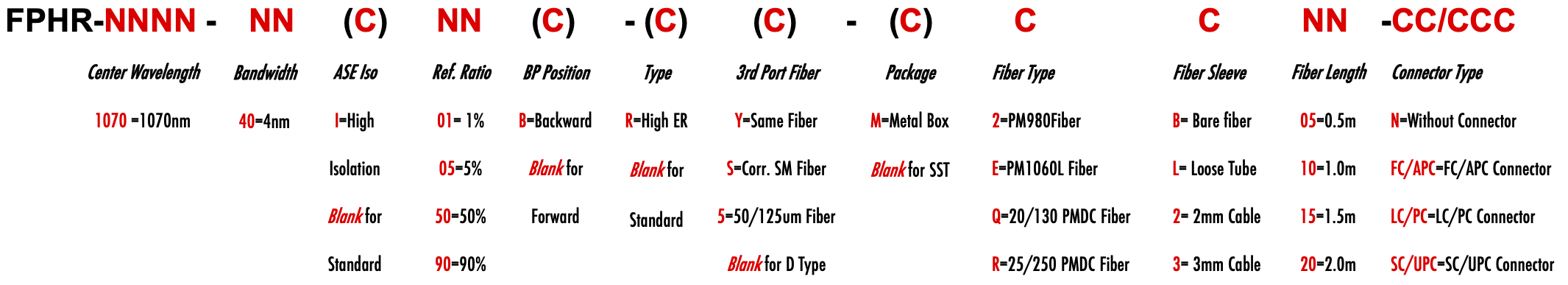FPHR 1070nm Singlemode PM Fiber Bandpass Filter Tap coupler splitter Hybrid Bandwidth 4.0nm 4nm optical fiber bandpass filter with partial reflective fiber mirror or tap coupler or splitter hybrid device or bandstop filter filtre passe-bande à fibre optique avec miroir à fibre à réflexion partielle ou coupleur de prise ou dispositif hybride séparateur ou filtre coupe-bande Bandpassfilter aus optischen Fasern mit teilweise reflektierendem Faserspiegel oder Abzweigkoppler oder Splitter-Hybridgerät oder Bandsperrfilter filtro passa banda in fibra ottica con specchio in fibra riflettente parziale o accoppiatore a presa o dispositivo ibrido sdoppiatore o filtro elimina banda filtro passa-banda de fibra óptica com espelho de fibra reflexiva parcial ou acoplador de torneira ou dispositivo híbrido divisor ou filtro de parada de banda Filtro de paso de banda de fibra óptica con espejo de fibra reflectante parcial o acoplador de grifo o dispositivo híbrido divisor o filtro de parada de banda optinen kuitukaistanpäästösuodatin osittain heijastavalla kuitupeilillä tai hanan liittimellä tai jakajahybridilaitteella tai kaistanstop-suodattimella glasvezelbanddoorlaatfilter met gedeeltelijk reflecterende vezelspiegel of kraankoppeling of splitter hybride apparaat of bandstopfilter pásmový filtr s optickým vláknem s ?áste?ným reflexním vláknovým zrcadlem nebo odbo?ovací spojkou nebo rozbo?ovacím hybridním za?ízením nebo pásmovým filtrem ?wiat?owodowy filtr pasmowo-przepustowy z cz??ciowo odblaskowym lustrem ?wiat?owodowym lub hybrydowe urz?dzenie sprz?gaj?ce lub rozdzielaj?ce lub filtr pasmowy optisk fiber båndpassfilter med delvis reflekterende fiberspeil eller tappkobling eller splitter hybrid enhet eller båndstoppfilter PM980 PM980XP PM980HP LMA 6/125um 10/125um 10/130um 12/130um 15/125um 15/130um 20/125um 20/130um 25/250um 30/250um SC Single Clad Cladding DC Double Clad or large mode area fiber fibre à simple gaine ou fibre à double gaine ou fibre à grande zone de mode ingle Clad-Faser oder Double Clad-Faser oder Large-Mode-Area-Faser ibra con revestimiento simple o fibra con revestimiento doble o fibra de área modal grande fibra de revestimento simples ou fibra de revestimento duplo ou fibra de área de modo grande ibra a rivestimento singolo o fibra a doppio rivestimento o fibra a grande area modale yksikerroksinen kuitu tai kaksinkertainen kuitu tai suurimuotoinen kuitu 2-port D Type 3-port Y Type 4-port X Type Type D à 2 ports Type Y à 3 ports Type X à 4 ports -Port-D-Typ 3-Port-Y-Typ 4-Port-X-Typ Tipo D de 2 puertos Tipo Y de 3 puertos Tipo X de 4 puertos Tipo D de 2 portas Tipo Y de 3 portas Tipo X de 4 portas ipo D a 2 porte Tipo Y a 3 porte Tipo X a 4 porte 2-porttinen D-tyyppi 3-porttinen Y-tyyppi 4-porttinen X-tyyppi Polarization Maintaining PM Extinction Ratio ER Panda tie maintien de la polarisation fibre panda ou cravate avec taux d'extinction polarisationserhaltende Panda- oder Bindefaser mit Extinktionsverhältnis polarización manteniendo panda o fibra de amarre con relación de extinción polarização mantendo a fibra panda ou tie com taxa de extinção polarizzazione mantenendo panda o legare fibra con rapporto di estinzione olarisaatiota ylläpitävä panda- tai sidekuitu ekstinktiosuhteella