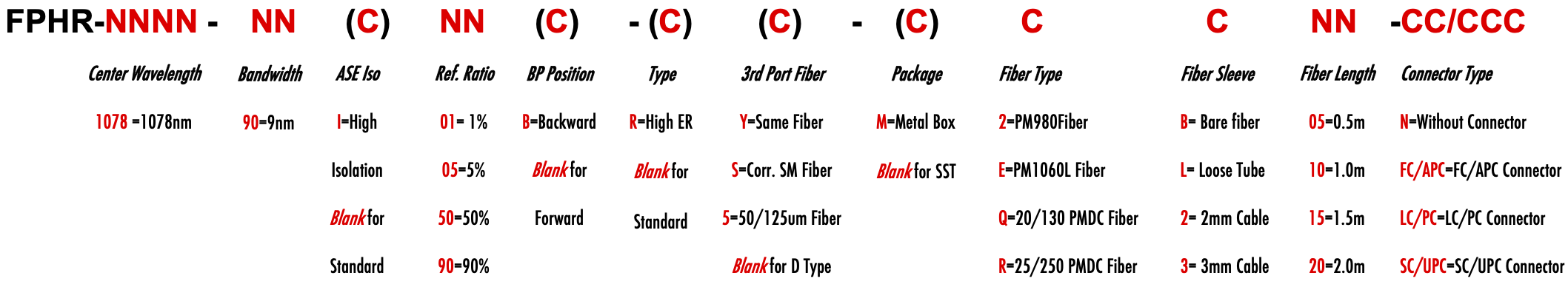 FPHR 1078nm Singlemode PM Fiber Bandpass Filter Tap coupler splitter Hybrid Bandwidth 9.0nm 9nm optical fiber bandpass filter with partial reflective fiber mirror or tap coupler or splitter hybrid device or bandstop filter filtre passe-bande à fibre optique avec miroir à fibre à réflexion partielle ou coupleur de prise ou dispositif hybride séparateur ou filtre coupe-bande Bandpassfilter aus optischen Fasern mit teilweise reflektierendem Faserspiegel oder Abzweigkoppler oder Splitter-Hybridgerät oder Bandsperrfilter filtro passa banda in fibra ottica con specchio in fibra riflettente parziale o accoppiatore a presa o dispositivo ibrido sdoppiatore o filtro elimina banda filtro passa-banda de fibra óptica com espelho de fibra reflexiva parcial ou acoplador de torneira ou dispositivo híbrido divisor ou filtro de parada de banda Filtro de paso de banda de fibra óptica con espejo de fibra reflectante parcial o acoplador de grifo o dispositivo híbrido divisor o filtro de parada de banda optinen kuitukaistanpäästösuodatin osittain heijastavalla kuitupeilillä tai hanan liittimellä tai jakajahybridilaitteella tai kaistanstop-suodattimella glasvezelbanddoorlaatfilter met gedeeltelijk reflecterende vezelspiegel of kraankoppeling of splitter hybride apparaat of bandstopfilter pásmový filtr s optickým vláknem s ?áste?ným reflexním vláknovým zrcadlem nebo odbo?ovací spojkou nebo rozbo?ovacím hybridním za?ízením nebo pásmovým filtrem ?wiat?owodowy filtr pasmowo-przepustowy z cz??ciowo odblaskowym lustrem ?wiat?owodowym lub hybrydowe urz?dzenie sprz?gaj?ce lub rozdzielaj?ce lub filtr pasmowy optisk fiber båndpassfilter med delvis reflekterende fiberspeil eller tappkobling eller splitter hybrid enhet eller båndstoppfilter PM980 PM980XP PM980HP LMA 6/125um 10/125um 10/130um 12/130um 15/125um 15/130um 20/125um 20/130um 25/250um 30/250um SC Single Clad Cladding DC Double Clad or large mode area fiber fibre à simple gaine ou fibre à double gaine ou fibre à grande zone de mode ingle Clad-Faser oder Double Clad-Faser oder Large-Mode-Area-Faser ibra con revestimiento simple o fibra con revestimiento doble o fibra de área modal grande fibra de revestimento simples ou fibra de revestimento duplo ou fibra de área de modo grande ibra a rivestimento singolo o fibra a doppio rivestimento o fibra a grande area modale yksikerroksinen kuitu tai kaksinkertainen kuitu tai suurimuotoinen kuitu 2-port D Type 3-port Y Type 4-port X Type Type D à 2 ports Type Y à 3 ports Type X à 4 ports -Port-D-Typ 3-Port-Y-Typ 4-Port-X-Typ Tipo D de 2 puertos Tipo Y de 3 puertos Tipo X de 4 puertos Tipo D de 2 portas Tipo Y de 3 portas Tipo X de 4 portas ipo D a 2 porte Tipo Y a 3 porte Tipo X a 4 porte 2-porttinen D-tyyppi 3-porttinen Y-tyyppi 4-porttinen X-tyyppi Polarization Maintaining PM Extinction Ratio ER Panda tie maintien de la polarisation fibre panda ou cravate avec taux d'extinction polarisationserhaltende Panda- oder Bindefaser mit Extinktionsverhältnis polarización manteniendo panda o fibra de amarre con relación de extinción polarização mantendo a fibra panda ou tie com taxa de extinção polarizzazione mantenendo panda o legare fibra con rapporto di estinzione olarisaatiota ylläpitävä panda- tai sidekuitu ekstinktiosuhteella