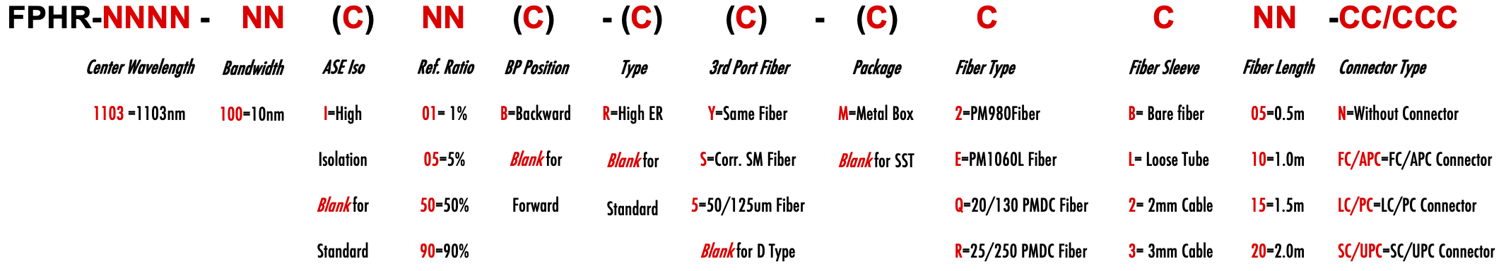 FPHR 1103nm Singlemode PM Fiber Bandpass Filter Tap coupler splitter Hybrid Bandwidth 10nm 10.0nm optical fiber bandpass filter with partial reflective fiber mirror or tap coupler or splitter hybrid device or bandstop filter filtre passe-bande à fibre optique avec miroir à fibre à réflexion partielle ou coupleur de prise ou dispositif hybride séparateur ou filtre coupe-bande Bandpassfilter aus optischen Fasern mit teilweise reflektierendem Faserspiegel oder Abzweigkoppler oder Splitter-Hybridgerät oder Bandsperrfilter filtro passa banda in fibra ottica con specchio in fibra riflettente parziale o accoppiatore a presa o dispositivo ibrido sdoppiatore o filtro elimina banda filtro passa-banda de fibra óptica com espelho de fibra reflexiva parcial ou acoplador de torneira ou dispositivo híbrido divisor ou filtro de parada de banda Filtro de paso de banda de fibra óptica con espejo de fibra reflectante parcial o acoplador de grifo o dispositivo híbrido divisor o filtro de parada de banda optinen kuitukaistanpäästösuodatin osittain heijastavalla kuitupeilillä tai hanan liittimellä tai jakajahybridilaitteella tai kaistanstop-suodattimella glasvezelbanddoorlaatfilter met gedeeltelijk reflecterende vezelspiegel of kraankoppeling of splitter hybride apparaat of bandstopfilter pásmový filtr s optickým vláknem s ?áste?ným reflexním vláknovým zrcadlem nebo odbo?ovací spojkou nebo rozbo?ovacím hybridním za?ízením nebo pásmovým filtrem ?wiat?owodowy filtr pasmowo-przepustowy z cz??ciowo odblaskowym lustrem ?wiat?owodowym lub hybrydowe urz?dzenie sprz?gaj?ce lub rozdzielaj?ce lub filtr pasmowy optisk fiber båndpassfilter med delvis reflekterende fiberspeil eller tappkobling eller splitter hybrid enhet eller båndstoppfilter PM980 PM980XP PM980HP LMA 6/125um 10/125um 10/130um 12/130um 15/125um 15/130um 20/125um 20/130um 25/250um 30/250um SC Single Clad Cladding DC Double Clad or large mode area fiber fibre à simple gaine ou fibre à double gaine ou fibre à grande zone de mode ingle Clad-Faser oder Double Clad-Faser oder Large-Mode-Area-Faser ibra con revestimiento simple o fibra con revestimiento doble o fibra de área modal grande fibra de revestimento simples ou fibra de revestimento duplo ou fibra de área de modo grande ibra a rivestimento singolo o fibra a doppio rivestimento o fibra a grande area modale yksikerroksinen kuitu tai kaksinkertainen kuitu tai suurimuotoinen kuitu 2-port D Type 3-port Y Type 4-port X Type Type D à 2 ports Type Y à 3 ports Type X à 4 ports -Port-D-Typ 3-Port-Y-Typ 4-Port-X-Typ Tipo D de 2 puertos Tipo Y de 3 puertos Tipo X de 4 puertos Tipo D de 2 portas Tipo Y de 3 portas Tipo X de 4 portas ipo D a 2 porte Tipo Y a 3 porte Tipo X a 4 porte 2-porttinen D-tyyppi 3-porttinen Y-tyyppi 4-porttinen X-tyyppi Polarization Maintaining PM Extinction Ratio ER Panda tie maintien de la polarisation fibre panda ou cravate avec taux d'extinction polarisationserhaltende Panda- oder Bindefaser mit Extinktionsverhältnis polarización manteniendo panda o fibra de amarre con relación de extinción polarização mantendo a fibra panda ou tie com taxa de extinção polarizzazione mantenendo panda o legare fibra con rapporto di estinzione olarisaatiota ylläpitävä panda- tai sidekuitu ekstinktiosuhteella
