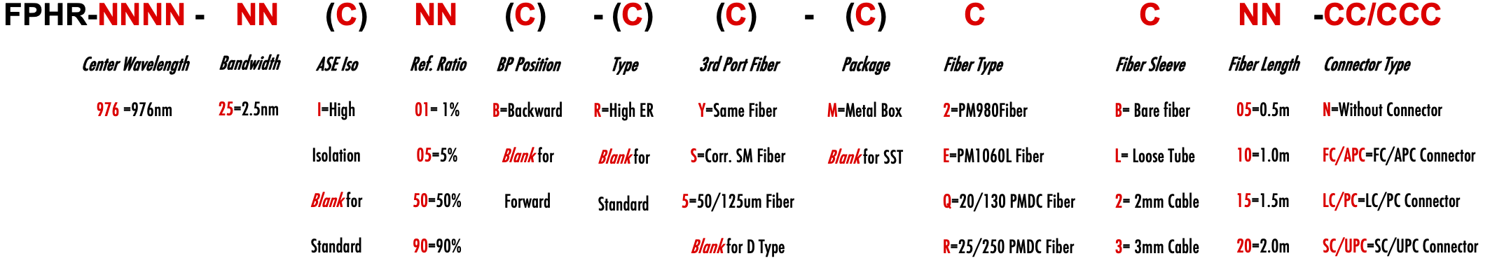 FPHR 976nm Singlemode PM Fiber Bandpass Filter Tap coupler splitter Hybrid Bandwidth 2.5nm optical fiber bandpass filter with partial reflective fiber mirror or tap coupler or splitter hybrid device or bandstop filter filtre passe-bande à fibre optique avec miroir à fibre à réflexion partielle ou coupleur de prise ou dispositif hybride séparateur ou filtre coupe-bande Bandpassfilter aus optischen Fasern mit teilweise reflektierendem Faserspiegel oder Abzweigkoppler oder Splitter-Hybridgerät oder Bandsperrfilter filtro passa banda in fibra ottica con specchio in fibra riflettente parziale o accoppiatore a presa o dispositivo ibrido sdoppiatore o filtro elimina banda filtro passa-banda de fibra óptica com espelho de fibra reflexiva parcial ou acoplador de torneira ou dispositivo híbrido divisor ou filtro de parada de banda Filtro de paso de banda de fibra óptica con espejo de fibra reflectante parcial o acoplador de grifo o dispositivo híbrido divisor o filtro de parada de banda optinen kuitukaistanpäästösuodatin osittain heijastavalla kuitupeilillä tai hanan liittimellä tai jakajahybridilaitteella tai kaistanstop-suodattimella glasvezelbanddoorlaatfilter met gedeeltelijk reflecterende vezelspiegel of kraankoppeling of splitter hybride apparaat of bandstopfilter pásmový filtr s optickým vláknem s ?áste?ným reflexním vláknovým zrcadlem nebo odbo?ovací spojkou nebo rozbo?ovacím hybridním za?ízením nebo pásmovým filtrem ?wiat?owodowy filtr pasmowo-przepustowy z cz??ciowo odblaskowym lustrem ?wiat?owodowym lub hybrydowe urz?dzenie sprz?gaj?ce lub rozdzielaj?ce lub filtr pasmowy optisk fiber båndpassfilter med delvis reflekterende fiberspeil eller tappkobling eller splitter hybrid enhet eller båndstoppfilter PM980 PM980XP PM980HP LMA 6/125um 10/125um 10/130um 12/130um 15/125um 15/130um 20/125um 20/130um 25/250um 30/250um SC Single Clad Cladding DC Double Clad or large mode area fiber fibre à simple gaine ou fibre à double gaine ou fibre à grande zone de mode ingle Clad-Faser oder Double Clad-Faser oder Large-Mode-Area-Faser ibra con revestimiento simple o fibra con revestimiento doble o fibra de área modal grande fibra de revestimento simples ou fibra de revestimento duplo ou fibra de área de modo grande ibra a rivestimento singolo o fibra a doppio rivestimento o fibra a grande area modale yksikerroksinen kuitu tai kaksinkertainen kuitu tai suurimuotoinen kuitu 2-port D Type 3-port Y Type 4-port X Type Type D à 2 ports Type Y à 3 ports Type X à 4 ports -Port-D-Typ 3-Port-Y-Typ 4-Port-X-Typ Tipo D de 2 puertos Tipo Y de 3 puertos Tipo X de 4 puertos Tipo D de 2 portas Tipo Y de 3 portas Tipo X de 4 portas ipo D a 2 porte Tipo Y a 3 porte Tipo X a 4 porte 2-porttinen D-tyyppi 3-porttinen Y-tyyppi 4-porttinen X-tyyppi Polarization Maintaining PM Extinction Ratio ER Panda tie maintien de la polarisation fibre panda ou cravate avec taux d'extinction polarisationserhaltende Panda- oder Bindefaser mit Extinktionsverhältnis polarización manteniendo panda o fibra de amarre con relación de extinción polarização mantendo a fibra panda ou tie com taxa de extinção polarizzazione mantenendo panda o legare fibra con rapporto di estinzione olarisaatiota ylläpitävä panda- tai sidekuitu ekstinktiosuhteella