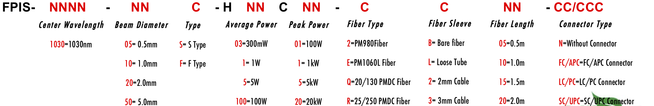 FPIS 1030nm 1020nm 1040nm 1035nm 1036nm 1025nm 1031nm 1032nm 1033nm 1029nm 1028nm Collimating Collimator Free Space Output Beam size PM Optical Isolator Polarization sensitive Isolate abschaltung Aislador isolateur Isolador odizolowa? PM980 PM980XP PM980HP LMA 6/125um 10/125um 10/130um 12/130um 15/125um 15/130um 20/125um 20/130um 25/250um 30/250um PMSC Single Clad Cladding PMDC Double Clad 2-port D Type 3-port Y Type Type Polarization Maintaining PM Extinction Ratio ER Panda for Pulse Power 1W 2W 3W 5W 10W 15W 20W 25W 30W 35W 40W 45W 50W 55W 60W 65W 70W 75W 80W 85W 90W 95W 100W 100W 1kW 2kW 3kW 5kW 10kW 15kW 20kW average peak ns ps fs kW Watt Watts HP FPIS 1030nm 1020nm 1040nm 1035nm 1036nm 1025nm 1031nm 1032nm 1033nm 1029nm 1028nm Collimating Collimator Free Space Output Beam size PM Optical Isolator Polarization sensitive Isolate abschaltung Aislador isolateur Isolador odizolowa? PM980 PM980XP PM980HP LMA 6/125um 10/125um 10/130um 12/130um 15/125um 15/130um 20/125um 20/130um 25/250um 30/250um PMSC Single Clad Cladding PMDC Double Clad 2-port D Type 3-port Y Type Type Polarization Maintaining PM Extinction Ratio ER Panda for Pulse Power 1W 2W 3W 5W 10W 15W 20W 25W 30W 35W 40W 45W 50W 55W 60W 65W 70W 75W 80W 85W 90W 95W 100W 100W 1kW 2kW 3kW 5kW 10kW 15kW 20kW average peak ns ps fs kW Watt Watts HP FPIS 1030nm 1020nm 1040nm 1035nm 1036nm 1025nm 1031nm 1032nm 1033nm 1029nm 1028nm Collimating Collimator Free Space Output Beam size PM Optical Isolator Polarization sensitive Isolate abschaltung Aislador isolateur Isolador odizolowa? PM980 PM980XP PM980HP LMA 6/125um 10/125um 10/130um 12/130um 15/125um 15/130um 20/125um 20/130um 25/250um 30/250um PMSC Single Clad Cladding PMDC Double Clad 2-port D Type 3-port Y Type Type Polarization Maintaining PM Extinction Ratio ER Panda for Pulse Power 1W 2W 3W 5W 10W 15W 20W 25W 30W 35W 40W 45W 50W 55W 60W 65W 70W 75W 80W 85W 90W 95W 100W 100W 1kW 2kW 3kW 5kW 10kW 15kW 20kW average peak ns ps fs kW Watt Watts HP 05S 05F 10S 10F 15S 15F 20S 20F 25S 25F 30S 30F 35S 35F 40S 40F 45S 45F 50S 50F