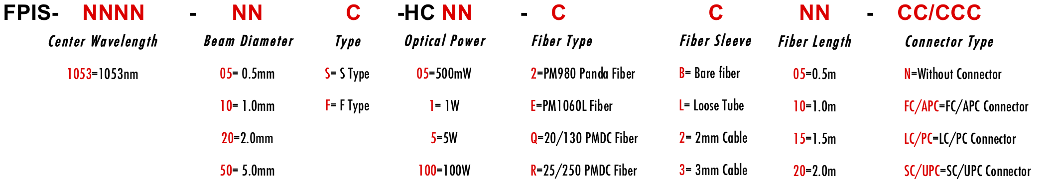 FPIS 1053nm 1050nm 1040nm 1063nm 1060nm 1055nm 1045nm 1052nm 1051nm 1054nm Collimating Collimator Free Space Output Beam size PM Optical Isolator Polarization sensitive Isolate abschaltung Aislador isolateur Isolador odizolowa? PM980 PM980XP PM980HP LMA 6/125um 10/125um 10/130um 12/130um 15/125um 15/130um 20/125um 20/130um 25/250um 30/250um PMSC Single Clad Cladding PMDC Double Clad 2-port D Type 3-port Y Type Type Polarization Maintaining PM Extinction Ratio ER Panda High Power 1W 2W 3W 4W 5W 10W 15W 20W 25W 30W 35W 40W 45W 50W 55W 60W 65W 70W 75W 80W 85W 90W 95W 100W Watt Watts HP CW Continuous Wave FPIS 1053nm 1050nm 1040nm 1063nm 1060nm 1055nm 1045nm 1052nm 1051nm 1054nm Collimating Collimator Free Space Output Beam size PM Optical Isolator Polarization sensitive Isolate abschaltung Aislador isolateur Isolador odizolowa? PM980 PM980XP PM980HP LMA 6/125um 10/125um 10/130um 12/130um 15/125um 15/130um 20/125um 20/130um 25/250um 30/250um PMSC Single Clad Cladding PMDC Double Clad 2-port D Type 3-port Y Type Type Polarization Maintaining PM Extinction Ratio ER Panda High Power 1W 2W 3W 5W 10W 15W 20W 25W 30W 35W 40W 45W 50W 55W 60W 65W 70W 75W 80W 85W 90W 95W 100W Watt Watts HP CW Continuous Wave FPIS 1053nm 1050nm 1040nm 1063nm 1060nm 1055nm 1045nm 1052nm 1051nm 1054nm Collimating Collimator Free Space Output Beam size PM Optical Isolator Polarization sensitive Isolate abschaltung Aislador isolateur Isolador odizolowa? PM980 PM980XP PM980HP LMA 6/125um 10/125um 10/130um 12/130um 15/125um 15/130um 20/125um 20/130um 25/250um 30/250um PMSC Single Clad Cladding PMDC Double Clad 2-port D Type 3-port Y Type Type Polarization Maintaining PM Extinction Ratio ER Panda High Power 1W 2W 3W 4W 5W 10W 15W 20W 25W 30W 35W 40W 45W 50W 55W 60W 65W 70W 75W 80W 85W 90W 95W 100W Watt Watts HP CW Continuous WaveHigh Power 1W 2W 3W 5W 10W 15W 20W 25W 30W 35W 40W 45W 50W 55W 60W 65W 70W 75W 80W 85W 90W 95W 100W Watt Watts HP CW Continuous Wave 05S 05F 10S 10F 15S 15F 20S 20F 25S 25F 30S 30F 35S 35F 40S 40F 45S 45F 50S 50F