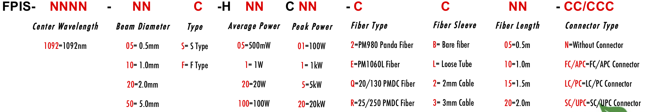 FPIS 1092nm 1090nm 1080nm 1100m 1102nm 1095nm 1091nm 1093nm 1094nm 1089nm 1087nm 1088nm 1086nm Collimating Collimator Free Space Output Beam size PM Optical Isolator Polarization sensitive Isolate abschaltung Aislador isolateur Isolador odizolowa? PM980 PM980XP PM980HP LMA 6/125um 10/125um 10/130um 12/130um 15/125um 15/130um 20/125um 20/130um 25/250um 30/250um PMSC Single Clad Cladding PMDC Double Clad 2-port D Type 3-port Y Type Type Polarization Maintaining PM Extinction Ratio ER Panda for Pulse Power 1W 2W 3W 5W 10W 15W 20W 25W 30W 35W 40W 45W 50W 55W 60W 65W 70W 75W 80W 85W 90W 95W 100W 100W 1kW 2kW 3kW 5kW 10kW 15kW 20kW average peak ns ps fs kW Watt Watts HP FPIS 1092nm 1090nm 1080nm 1100m 1102nm 1095nm 1091nm 1093nm 1094nm 1089nm 1087nm 1088nm 1086nm Collimating Collimator Free Space Output Beam size PM Optical Isolator Polarization sensitive Isolate abschaltung Aislador isolateur Isolador odizolowa? PM980 PM980XP PM980HP LMA 6/125um 10/125um 10/130um 12/130um 15/125um 15/130um 20/125um 20/130um 25/250um 30/250um PMSC Single Clad Cladding PMDC Double Clad 2-port D Type 3-port Y Type Type Polarization Maintaining PM Extinction Ratio ER Panda for Pulse Power 1W 2W 3W 5W 10W 15W 20W 25W 30W 35W 40W 45W 50W 55W 60W 65W 70W 75W 80W 85W 90W 95W 100W 100W 1kW 2kW 3kW 5kW 10kW 15kW 20kW average peak ns ps fs kW Watt Watts HP FPIS 1092nm 1090nm 1080nm 1100m 1102nm 1095nm 1091nm 1093nm 1094nm 1089nm 1087nm 1088nm 1086nm Collimating Collimator Free Space Output Beam size PM Optical Isolator Polarization sensitive Isolate abschaltung Aislador isolateur Isolador odizolowa? PM980 PM980XP PM980HP LMA 6/125um 10/125um 10/130um 12/130um 15/125um 15/130um 20/125um 20/130um 25/250um 30/250um PMSC Single Clad Cladding PMDC Double Clad 2-port D Type 3-port Y Type Type Polarization Maintaining PM Extinction Ratio ER Panda for Pulse Power 1W 2W 3W 5W 10W 15W 20W 25W 30W 35W 40W 45W 50W 55W 60W 65W 70W 75W 80W 85W 90W 95W 100W 100W 1kW 2kW 3kW 5kW 10kW 15kW 20kW average peak ns ps fs kW Watt Watts HP 05S 05F 10S 10F 15S 15F 20S 20F 25S 25F 30S 30F 35S 35F 40S 40F 45S 45F 50S 50F