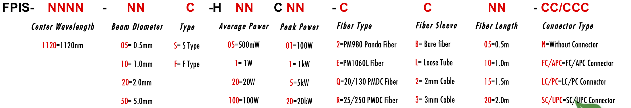 FPIS 1120nm 1110nm 1130nm 1125nm 1115nm 1116nm 1117nm 1118nm 1119nm 1121nm 1122nm 1123nm 1124nm Collimating Collimator Free Space Output Beam size PM Optical Isolator Polarization sensitive Isolate abschaltung Aislador isolateur Isolador odizolowa? PM980 PM980XP PM980HP LMA 6/125um 10/125um 10/130um 12/130um 15/125um 15/130um 20/125um 20/130um 25/250um 30/250um PMSC Single Clad Cladding PMDC Double Clad 2-port D Type 3-port Y Type Type Polarization Maintaining PM Extinction Ratio ER Panda for Pulse Power 1W 2W 3W 5W 10W 15W 20W 25W 30W 35W 40W 45W 50W 55W 60W 65W 70W 75W 80W 85W 90W 95W 100W 100W 1kW 2kW 3kW 5kW 10kW 15kW 20kW average peak ns ps fs kW Watt Watts HP FPIS 1120nm 1110nm 1130nm 1125nm 1115nm 1116nm 1117nm 1118nm 1119nm 1121nm 1122nm 1123nm 1124nm Collimating Collimator Free Space Output Beam size PM Optical Isolator Polarization sensitive Isolate abschaltung Aislador isolateur Isolador odizolowa? PM980 PM980XP PM980HP LMA 6/125um 10/125um 10/130um 12/130um 15/125um 15/130um 20/125um 20/130um 25/250um 30/250um PMSC Single Clad Cladding PMDC Double Clad 2-port D Type 3-port Y Type Type Polarization Maintaining PM Extinction Ratio ER Panda for Pulse Power 1W 2W 3W 5W 10W 15W 20W 25W 30W 35W 40W 45W 50W 55W 60W 65W 70W 75W 80W 85W 90W 95W 100W 100W 1kW 2kW 3kW 5kW 10kW 15kW 20kW average peak ns ps fs kW Watt Watts HP FPIS 1120nm 1110nm 1130nm 1125nm 1115nm 1116nm 1117nm 1118nm 1119nm 1121nm 1122nm 1123nm 1124nm Collimating Collimator Free Space Output Beam size PM Optical Isolator Polarization sensitive Isolate abschaltung Aislador isolateur Isolador odizolowa? PM980 PM980XP PM980HP LMA 6/125um 10/125um 10/130um 12/130um 15/125um 15/130um 20/125um 20/130um 25/250um 30/250um PMSC Single Clad Cladding PMDC Double Clad 2-port D Type 3-port Y Type Type Polarization Maintaining PM Extinction Ratio ER Panda for Pulse Power 1W 2W 3W 5W 10W 15W 20W 25W 30W 35W 40W 45W 50W 55W 60W 65W 70W 75W 80W 85W 90W 95W 100W 100W 1kW 2kW 3kW 5kW 10kW 15kW 20kW average peak ns ps fs kW Watt Watts HP 05S 05F 10S 10F 15S 15F 20S 20F 25S 25F 30S 30F 35S 35F 40S 40F 45S 45F 50S 50F