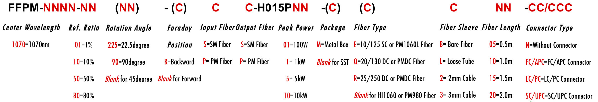 FFPM 1070nm 1060nm 1080nm 1075nm 1065nm 1071nm 1072nm 1073nm 1067nm 1068nm 1069nm Partial Reflective Faraday Mirror Polarization Insensitive miroir MirrorName espejo Mirror di Faraday Espelho de Faraday HI1060 1060XP PM980 PM980XP PM980HP LMA 6/125um 10/125um 10/130um 12/130um 15/125um 15/130um 20/125um 20/130um 25/250um 30/250um SC Single Clad PMSC Cladding DC PMDC Double Clad Polarization Maintaining PM Extinction Ratio ER Panda for Pulse Power 150mW 100W 1kW 2kW 3kW 5kW 10kW 15kW 20kW average peak ns ps fs kW Watt Watts HP FFPM 1070nm 1060nm 1080nm 1075nm 1065nm 1071nm 1072nm 1073nm 1067nm 1068nm 1069nm Partial Reflective Faraday Mirror Polarization Insensitive miroir MirrorName espejo Mirror di Faraday Espelho de Faraday HI1060 1060XP PM980 PM980XP PM980HP LMA 6/125um 10/125um 10/130um 12/130um 15/125um 15/130um 20/125um 20/130um 25/250um 30/250um SC Single Clad PMSC Cladding DC PMDC Double Clad Polarization Maintaining PM Extinction Ratio ER Panda for Pulse Power 150mW 100W 1kW 2kW 3kW 5kW 10kW 15kW 20kW average peak ns ps fs kW Watt Watts HP FFPM 1070nm 1060nm 1080nm 1075nm 1065nm 1071nm 1072nm 1073nm 1067nm 1068nm 1069nm Partial Reflective Faraday Mirror Polarization Insensitive miroir MirrorName espejo Mirror di Faraday Espelho de Faraday HI1060 1060XP PM980 PM980XP PM980HP LMA 6/125um 10/125um 10/130um 12/130um 15/125um 15/130um 20/125um 20/130um 25/250um 30/250um SC Single Clad PMSC Cladding DC PMDC Double Clad Polarization Maintaining PM Extinction Ratio ER Panda for Pulse Power 150mW 100W 1kW 2kW 3kW 5kW 10kW 15kW 20kW average peak ns ps fs kW Watt Watts HP BSS BPP BPS BSP 0190 0290 0390 0490 0590 0690 0790 0890 0990 1090 1190 1290 1390 1490 1590 1690 1790 1890 1990 2090 2190 2290 2390 2490 2590 2690 2790 2890 2990 3090 3190 3290 3390 3490 3590 3690 3790 3890 3990 4090 4190 4290 4390 4490 4590 4690 4790 4890 4990 5090 5190 5290 5390 5490 5590 5690 5790 5890 5990 6090 6190 6290 6390 6490 6590 6690 6790 6890 6990 7090 7190 7290 7390 7490 7590 7690 7790 7890 7990 8090 8190 8290 8390 8490 8590 8690 8790 8890 8990 9090 9190 9290 9390 9490 9590 9690 9790 9890 9990 01225 02225 03225 04225 05225 06225 07225 08225 09225 10225 11225 12225 13225 14225 15225 16225 17225 18225 19225 20225 21225 22225 23225 24225 25225 26225 27225 28225 29225 30225 31225 32225 33225 34225 35225 36225 37225 38225 39225 40225 41225 42225 43225 44225 45225 46225 47225 48225 49225 50225 51225 52225 53225 54225 55225 56225 57225 58225 59225 60225 61225 62225 63225 64225 65225 66225 67225 68225 69225 70225 71225 72225 73225 74225 75225 76225 77225 78225 79225 80225 81225 82225 83225 84225 85225 86225 87225 88225 89225 90225 91225 92225 93225 94225 95225 96225 97225 98225 99225