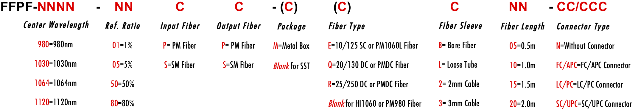 FFPF 1120nm 1100nm 1140nm 1103nm 1105nm 1106nm 1110nm 1115nm 1125nm 1130nm 1135nm Partial Reflective Fiber Mirror Polarization Insensitive Teilweise reflektierende Faserspiegelpolarisation unempfindlich Polarizzazione parziale dello specchio in fibra riflettente insensibile Parcial reflectante de fibra espejo polarización insensible Polarização reflexiva parcial do espelho de fibra insensível Miroir à fibre réfléchissante partielle insensible à la polarisation Osittain heijastava kuitupeili, polarisaatio herkkä HI1060 1060XP PM980 PM980XP PM980HP LMA 6/125um 10/125um 10/130um 12/130um 15/125um 15/130um 20/125um 20/130um 25/250um 30/250um SC Single Clad PMSC Cladding DC PMDC Double Clad Polarization Maintaining PM Extinction Ratio ER Panda