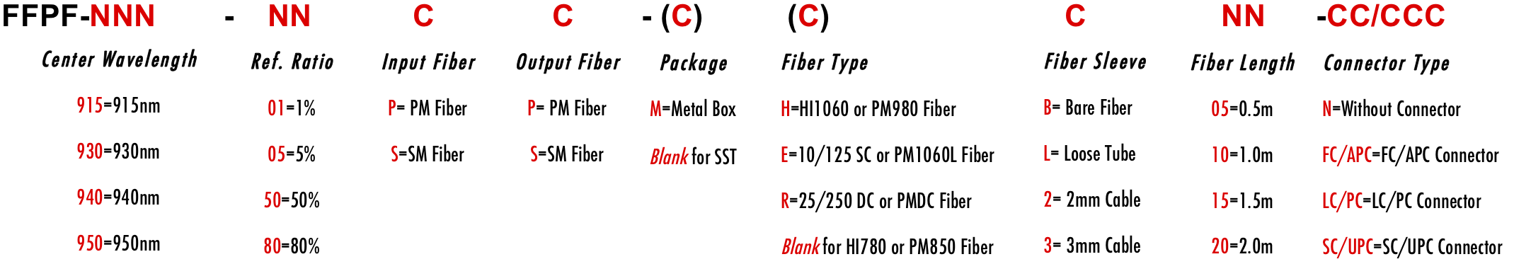 FFPF 915nm 900nm 930nm 916nm 905nm 910nm 920nm 925nm Partial Reflective Fiber Mirror Polarization Insensitive Teilweise reflektierende Faserspiegelpolarisation unempfindlich Polarizzazione parziale dello specchio in fibra riflettente insensibile Parcial reflectante de fibra espejo polarización insensible Polarização reflexiva parcial do espelho de fibra insensível Miroir à fibre réfléchissante partielle insensible à la polarisation Osittain heijastava kuitupeili, polarisaatio herkkä HI780 780HP PM850 PM980 PM780HP 5/125um 4/125um HI1060 1060XP LMA 6/125um 10/125um 10/130um 12/125um 12/130um 15/125um 15/130um 20/125um 20/130um 25/250um 30/250um SC Single Clad PMSC Cladding DC PMDC Double Clad Polarization Maintaining PM Extinction Ratio ER Panda
