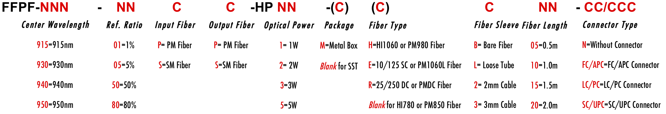 FFPF 940nm 920nm 960nm 925nm 930nm 935nm 945nm 950nm 955nm Partial Reflective Fiber Mirror Polarization Insensitive Teilweise reflektierende Faserspiegelpolarisation unempfindlich Polarizzazione parziale dello specchio in fibra riflettente insensibile Parcial reflectante de fibra espejo polarización insensible Polarização reflexiva parcial do espelho de fibra insensível Miroir à fibre réfléchissante partielle insensible à la polarisation Osittain heijastava kuitupeili, polarisaatio herkkä HI780 780HP PM850 PM980 PM780HP 5/125um 4/125um HI1060 1060XP LMA 6/125um 10/125um 10/130um 12/125um 12/130um 15/125um 15/130um 20/125um 20/130um 25/250um 30/250um SC Single Clad PMSC Cladding DC PMDC Double Clad Polarization Maintaining PM Extinction Ratio ER Panda