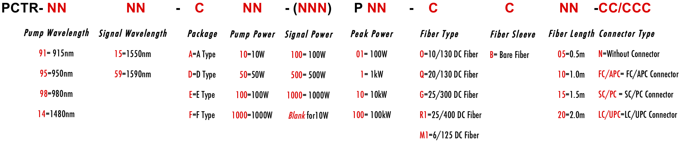 915nm, 950nm, 975nm, 980nm, 1480nm