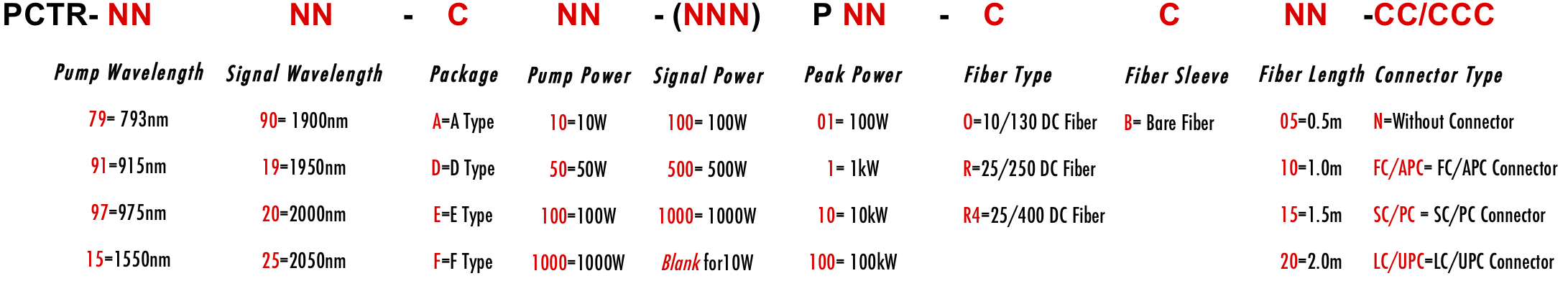 793nm, 808nm, 830nm, 915nm, 950nm, 975nm, 980nm, 1550nm