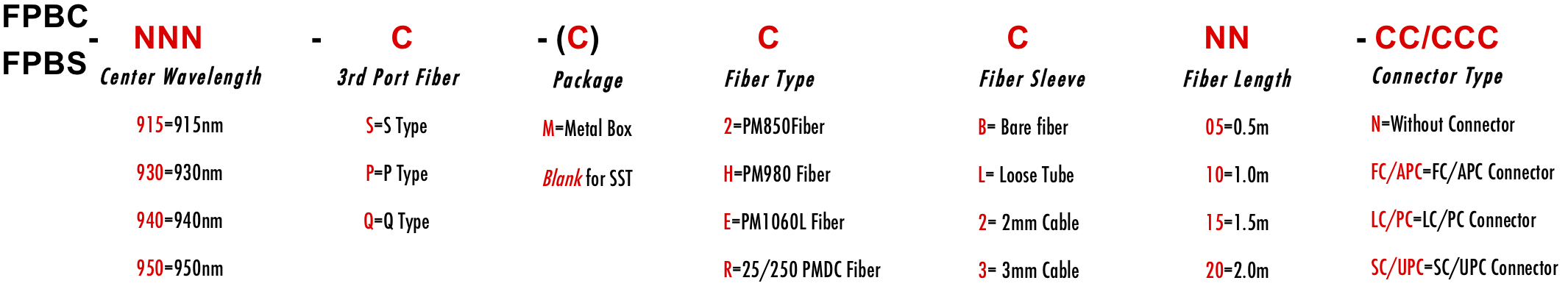 FPBC FPBS 930nm 910nm 950nm 915nm 920nm 925nm 935nm 940nm 945nm Fiber optical polarization beam combiner and splitter with polarization sensitive optics Combinador e divisor de feixe de polarização óptica de fibra com óptica sensível à polarização Combinador y divisor de haz de polarización de fibra óptica con óptica sensible a la polarización Combinatore e splitter di fascio di polarizzazione ottica in fibra con ottica sensibile alla polarizzazione Kuituoptisen polarisointisäteen yhdistin ja jakaja polarisaatioherkällä optiikalla Combinateur et séparateur de faisceau de polarisation à fibre optique avec optique sensible à la polarisation Faseroptischer Polarisationsstrahlkombinierer und -teiler mit polarisationsempfindlicher Optik ?wiat?owodowy ??cznik i rozdzielacz wi?zki polaryzacyjnej z optyk? wra?liw? na polaryzacj? HI780 780HP PM850 PM980 PM780HP 5/125um 4/125um HI1060 1060XP LMA 6/125um 10/125um 10/130um 12/125um 12/130um 15/125um 15/130um 20/125um 20/130um 25/250um 30/250um SC Single Clad PMSC Cladding DC PMDC Double Clad Polarization Maintaining PM Extinction Ratio ER Panda