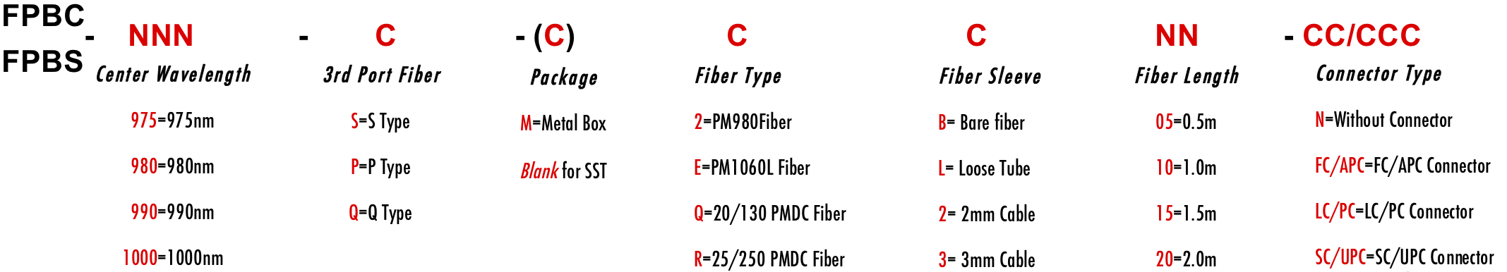 FPBC FPBS 975nm 955nm 995nm 960nm 965nm 970nm 976nm 980nm 985nm 990nm Fiber optical polarization beam combiner and splitter with polarization sensitive optics Combinador e divisor de feixe de polarização óptica de fibra com óptica sensível à polarização Combinador y divisor de haz de polarización de fibra óptica con óptica sensible a la polarización Combinatore e splitter di fascio di polarizzazione ottica in fibra con ottica sensibile alla polarizzazione Kuituoptisen polarisointisäteen yhdistin ja jakaja polarisaatioherkällä optiikalla Combinateur et séparateur de faisceau de polarisation à fibre optique avec optique sensible à la polarisation Faseroptischer Polarisationsstrahlkombinierer und -teiler mit polarisationsempfindlicher Optik ?wiat?owodowy ??cznik i rozdzielacz wi?zki polaryzacyjnej z optyk? wra?liw? na polaryzacj? HI1060 1060XP PM980 PM980XP PM980HP LMA 6/125um 10/125um 10/130um 12/130um 15/125um 15/130um 20/125um 20/130um 25/250um 30/250um SC Single Clad PMSC Cladding DC PMDC Double Clad Polarization Maintaining PM Extinction Ratio ER Panda