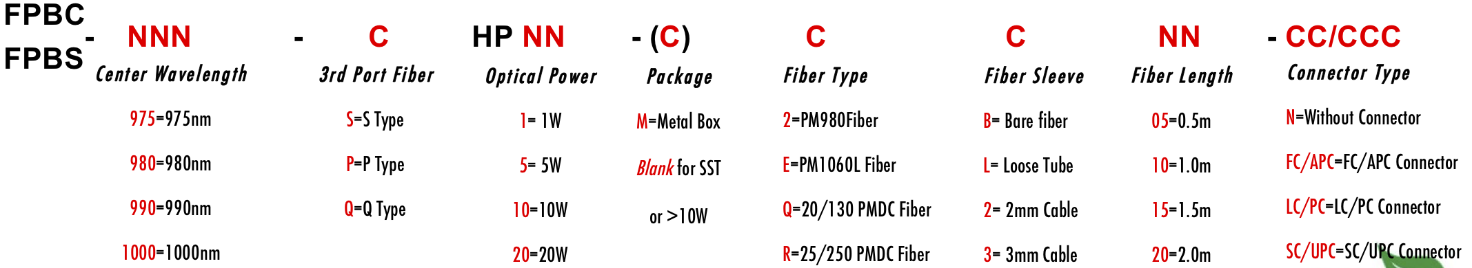 FPBC FPBS 990nm 970nm 1010nm 975nm 976nm 980nm 985nm 995nm 1000nm 1005nm 1006nm Fiber optical polarization beam combiner and splitter with polarization sensitive optics Combinador e divisor de feixe de polarização óptica de fibra com óptica sensível à polarização Combinador y divisor de haz de polarización de fibra óptica con óptica sensible a la polarización Combinatore e splitter di fascio di polarizzazione ottica in fibra con ottica sensibile alla polarizzazione Kuituoptisen polarisointisäteen yhdistin ja jakaja polarisaatioherkällä optiikalla Combinateur et séparateur de faisceau de polarisation à fibre optique avec optique sensible à la polarisation Faseroptischer Polarisationsstrahlkombinierer und -teiler mit polarisationsempfindlicher Optik ?wiat?owodowy ??cznik i rozdzielacz wi?zki polaryzacyjnej z optyk? wra?liw? na polaryzacj? HI1060 1060XP PM980 PM980XP PM980HP LMA 6/125um 10/125um 10/130um 12/130um 15/125um 15/130um 20/125um 20/130um 25/250um 30/250um SC Single Clad PMSC Cladding DC PMDC Double Clad Polarization Maintaining PM Extinction Ratio ER Panda