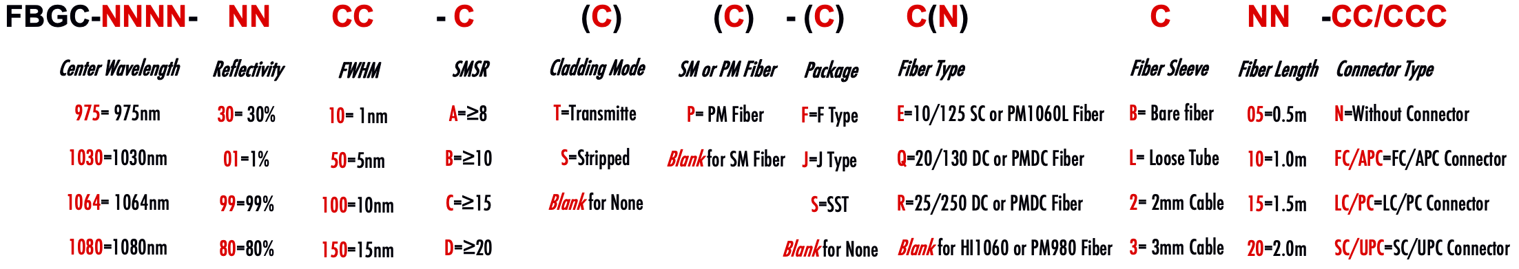 FBGC 1030nm 1010nm 1050nm 1015nm 1020nm 1015nm 1035nm 1036nm 1040nm 1045nm polarization insensitive fiber pigtailed fiber bragg grating FBG for light signal sensing and high power laser with high reflectivity mirror and optical coupler polarisaatiolle herkkä kuitu pigtailed -kuitukerroin FBG valosignaalin tunnistamiseen ja suuritehoinen laser, jossa on heijastava peili ja optinen liitin Fibre insensible à la polarisation réseau de Bragg à fibre amorce FBG pour la détection du signal lumineux et laser haute puissance avec miroir à haute réflectivité et coupleur optique polarisationsunempfindliches Faser-Pigtail-Faser-Bragg-Gitter FBG für die Lichtsignalerfassung und Hochleistungslaser mit hochreflektierendem Spiegel und Optokoppler fibra insensibile alla polarizzazione reticolo di bragg fibra pigtailed FBG per il rilevamento del segnale luminoso e laser ad alta potenza con specchio ad alta riflettività e accoppiatore ottico niewra?liwy na polaryzacj? w?ókno typu pigtailed siatka Bragga FBG do wykrywania sygna?u ?wietlnego i laser o du?ej mocy z lustrem o wysokim wspó?czynniku odbicia i sprz?gaczem optycznym fibra insensível à polarização fibra trançada com grade FBG para detecção de sinal de luz e laser de alta potência com espelho de alta refletividade e acoplador óptico fibra insensible a la polarización fibra trenzada rejilla bragg FBG para detección de señales de luz y láser de alta potencia con espejo de alta reflectividad y acoplador óptico HI1060 1060XP PM980 PM1060L PM980HP LMA 6/125um 10/125um 10/130um 12/125um 12/130um 15/125um 15/130um 20/125um 20/130um 25/250um 30/250um SC Single Clad Cladding DC Double Clad Polarization Maintaining PM Extinction Ratio ER Panda Polarizzazione Mantenimento del rapporto di estinzione Polarisation Aufrechterhaltung des Extinktionsverhältnisses Polarización Mantener la relación de extinción Polarização Mantendo a taxa de extinção Polarisation maintenant le rapport d'extinction Polarisaatio ylläpitämällä sukupuuttoon suhteen