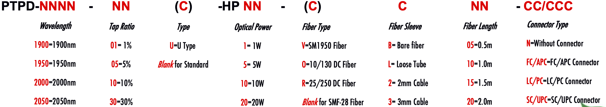PTPD 1950nm 1920nm 1980nm 1925nm 1930nm 1935nm 1940nm 1945nm 1955nm 1960nm 1965nm 1970nm 1975nm polarization insensitive fiber pigtailed tap photodiode PD for power monitoring with coupler and splitter to tapped light signal fotodiodo de derivación en espiral de fibra insensible a la polarización PD para monitoreo de potencia con acoplador y divisor a señal de luz derivada fotodiodo PD de derivação de fibra insensível à polarização para monitoramento de energia com acoplador e divisor para sinal de luz derivado Niewra?liwa na polaryzacj? fotodioda PD z pigtailami z odczepami do monitorowania mocy ze sprz?gaczem i rozdzielaczem do odczepianego sygna?u ?wietlnego polarisaatiolle herkkä kuitu pigtailed tap -valodiodi PD tehonvalvontaan kytkimellä ja jakajalla napautetulle valosignaalille Photodiode à prise en queue de cochon à fibre insensible à la polarisation PD pour la surveillance de l'alimentation avec coupleur et répartiteur au signal lumineux à prise polarisationsunempfindliche Faser Pigtailed Tap Photodiode PD zur Leistungsüberwachung mit Koppler und Splitter zum abgegriffenen Lichtsignal fotodiodo PD con presa a spirale in fibra insensibile alla polarizzazione per il monitoraggio della potenza con accoppiatore e sdoppiatore per segnale luminoso intercettato SMF-28 SMF28 SM1950 LMA 8/125um 10/125um 10/130um 20/125um 20/130um 25/250um SC Single Clad Cladding DC Double Clad 3-port Y Type