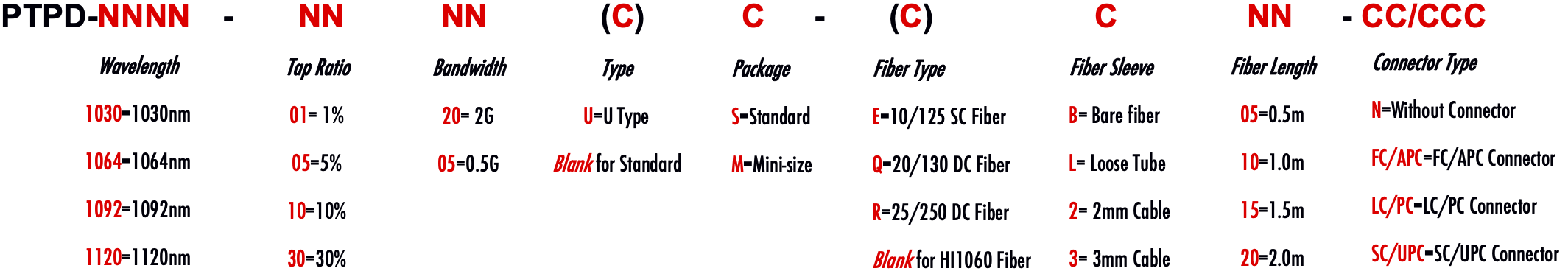PTPD 1064nm 1040nm 1084nm 1045nm 1050nm 1053nm 1056nm 1060nm 1063nm 1065nm 1070nm 1075nm 1080nm 1083nm polarization insensitive fiber pigtailed tap photodiode PD for power monitoring with coupler and splitter to tapped light signal fotodiodo de derivación en espiral de fibra insensible a la polarización PD para monitoreo de potencia con acoplador y divisor a señal de luz derivada fotodiodo PD de derivação de fibra insensível à polarização para monitoramento de energia com acoplador e divisor para sinal de luz derivado Niewra?liwa na polaryzacj? fotodioda PD z pigtailami z odczepami do monitorowania mocy ze sprz?gaczem i rozdzielaczem do odczepianego sygna?u ?wietlnego polarisaatiolle herkkä kuitu pigtailed tap -valodiodi PD tehonvalvontaan kytkimellä ja jakajalla napautetulle valosignaalille Photodiode à prise en queue de cochon à fibre insensible à la polarisation PD pour la surveillance de l'alimentation avec coupleur et répartiteur au signal lumineux à prise polarisationsunempfindliche Faser Pigtailed Tap Photodiode PD zur Leistungsüberwachung mit Koppler und Splitter zum abgegriffenen Lichtsignal fotodiodo PD con presa a spirale in fibra insensibile alla polarizzazione per il monitoraggio della potenza con accoppiatore e sdoppiatore per segnale luminoso intercettato HI1060 1060XP LMA 6/125um 10/125um 10/130um 12/125um 12/130um 15/125um 15/130um 20/125um 20/130um 25/250um 30/250um SC Single Clad Cladding DC Double Clad 3-port Y Type