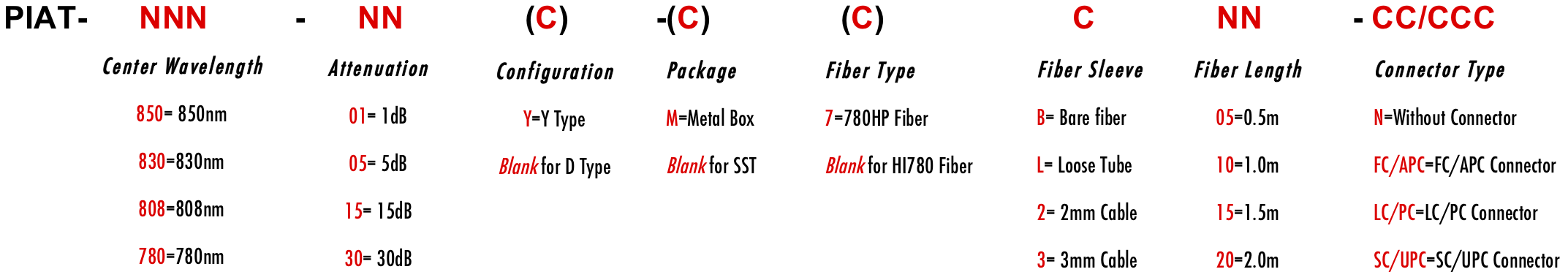 PIAT 780nm 760nm 800nm 765nm 766nm 770nm 775nm 785nm 790nm 793nm 795nm polarization insensitive optical fiber inline fixed attenuator atenuador fijo en línea de fibra óptica insensible a la polarización sta?y t?umik ?wiat?owodowy niewra?liwy na polaryzacj? polarisaatioherkkä optinen kuitu kiinteä vaimennin atténuateur fixe en ligne à fibre optique insensible à la polarisation polarisationsunempfindlicher Inline-Festdämpfer für optische Fasern ttenuatore fisso in linea in fibra ottica insensibile alla polarizzazione atenuador fixo em linha de fibra óptica insensível à polarização 1x2 2x2 HI780 780HP 5/125um 4/125um SC Single Clad Cladding DC Double Clad 3-port Y Type
