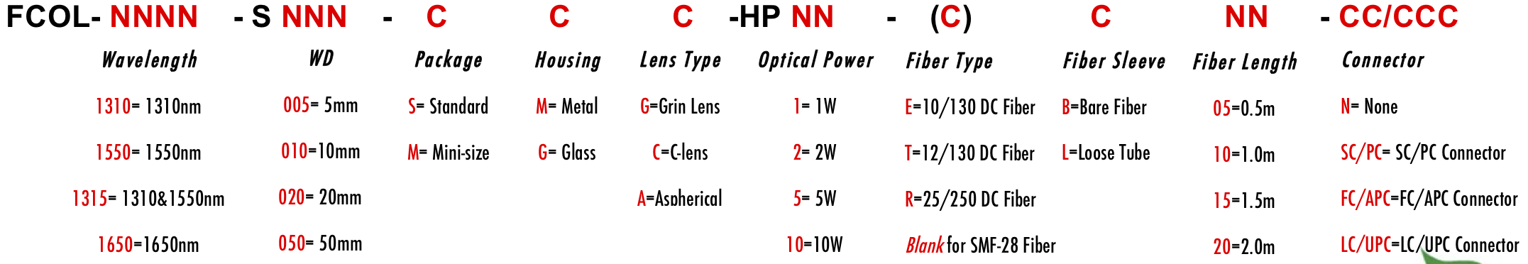 FCOL 1550nm 1510nm 1515nm 1520nm 1525nm 1530nm 1535nm 1540nm 1545nm 1555nm 1560nm 1565nm 1570nm 1575nm 1580nm 1585nm 1590nmpolarization insensitive optical fiber collimator with collimated gaussian beam for free space output or space doublet to collect light from free space with Grin lens C spherical lens and aspherical lens colimador de fibra óptica insensible a la polarización con haz gaussiano colimado para salida de espacio libre o doblete espacial para recoger luz del espacio libre con lente esférica C y lente asférica de lente Grin colimador de fibra óptica insensível à polarização com feixe gaussiano colimado para saída de espaço livre ou dupleto de espaço para coletar luz do espaço livre com lente Grin lente esférica C e lente asférica polarisaatioherkkä optisen kuidun kollimaattori, jossa on kollimoitu gaussinen säde vapaan tilan tuottamiseksi tai avaruusdubletti valon keräämiseksi vapaasta tilasta Grin-linssin pallomaisella linssillä ja asfäärisellä linssillä polarisationsunempfindlicher Lichtleiterkollimator mit kollimiertem Gaußschen Strahl für die Ausgabe im freien Raum oder Raumdublett zum Sammeln von Licht aus dem freien Raum mit der sphärischen Linse C und der asphärischen Linse der Grin-Linse C Collimateur à fibre optique insensible à la polarisation avec faisceau gaussien collimaté pour une sortie d'espace libre ou doublet d'espace pour collecter la lumière de l'espace libre avec lentille Grin C lentille sphérique et lentille asphérique kolimator ?wiat?owodowy niewra?liwy na polaryzacj? ze skolimowan? wi?zk? Gaussa zapewniaj?c? wyj?cie w wolnej przestrzeni lub dublet kosmiczny do zbierania ?wiat?a z wolnej przestrzeni za pomoc? soczewki sferycznej Grin C i soczewki asferycznej collimatore in fibra ottica insensibile alla polarizzazione con fascio gaussiano collimato per l'uscita nello spazio libero o doppietto nello spazio per raccogliere la luce dallo spazio libero con lente Grin C lente sferica e lente asferica SMF-28 SMF28 LMA 8/125um 10/125um 10/130um 12/130um 20/125um 20/130um 25/250um 25/300um 30/250um SC Single Clad Cladding DC Double Clad 3-port Y Type