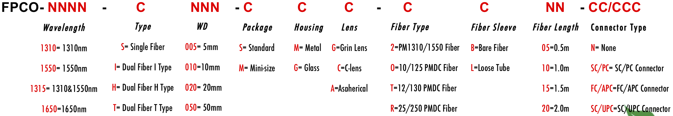 FPCO 1590nm 1550nm 1630nm 1555nm 1560nm 1565nm 1570nm 1575nm 1580nm 1585nm 1595nm 1600nm 1605nm 1610nm 1615nm 1620nm 1625nm polarization insensitive optical fiber collimator with collimated gaussian beam for free space output or space doublet to collect light from free space with Grin lens C spherical lens and aspherical lens colimador de fibra óptica insensible a la polarización con haz gaussiano colimado para salida de espacio libre o doblete espacial para recoger luz del espacio libre con lente esférica C y lente asférica de lente Grin colimador de fibra óptica insensível à polarização com feixe gaussiano colimado para saída de espaço livre ou dupleto de espaço para coletar luz do espaço livre com lente Grin lente esférica C e lente asférica polarisaatioherkkä optisen kuidun kollimaattori, jossa on kollimoitu gaussinen säde vapaan tilan tuottamiseksi tai avaruusdubletti valon keräämiseksi vapaasta tilasta Grin-linssin pallomaisella linssillä ja asfäärisellä linssillä polarisationsunempfindlicher Lichtleiterkollimator mit kollimiertem Gaußschen Strahl für die Ausgabe im freien Raum oder Raumdublett zum Sammeln von Licht aus dem freien Raum mit der sphärischen Linse C und der asphärischen Linse der Grin-Linse C Collimateur à fibre optique insensible à la polarisation avec faisceau gaussien collimaté pour une sortie d'espace libre ou doublet d'espace pour collecter la lumière de l'espace libre avec lentille Grin C lentille sphérique et lentille asphérique kolimator ?wiat?owodowy niewra?liwy na polaryzacj? ze skolimowan? wi?zk? Gaussa zapewniaj?c? wyj?cie w wolnej przestrzeni lub dublet kosmiczny do zbierania ?wiat?a z wolnej przestrzeni za pomoc? soczewki sferycznej Grin C i soczewki asferycznej collimatore in fibra ottica insensibile alla polarizzazione con fascio gaussiano collimato per l'uscita nello spazio libero o doppietto nello spazio per raccogliere la luce dallo spazio libero con lente Grin C lente sferica e lente asferica PM1310 PM1550 LMA 8/125um 10/125um 10/130um 12/130um 20/125um 20/130um 25/250um 25/300um 30/250um PMSC Single Clad Cladding PMDC Double Clad 3-port Y Type Polarization Maintaining PM Extinction Ratio ER Panda Polarizzazione Mantenimento del rapporto di estinzione Polarisation Aufrechterhaltung des Extinktionsverhältnisses Polarización Mantener la relación de extinción Polarização Mantendo a taxa de extinção Polarisation maintenant le rapport d'extinction Polarisaatio ylläpitämällä sukupuuttoon suhteen