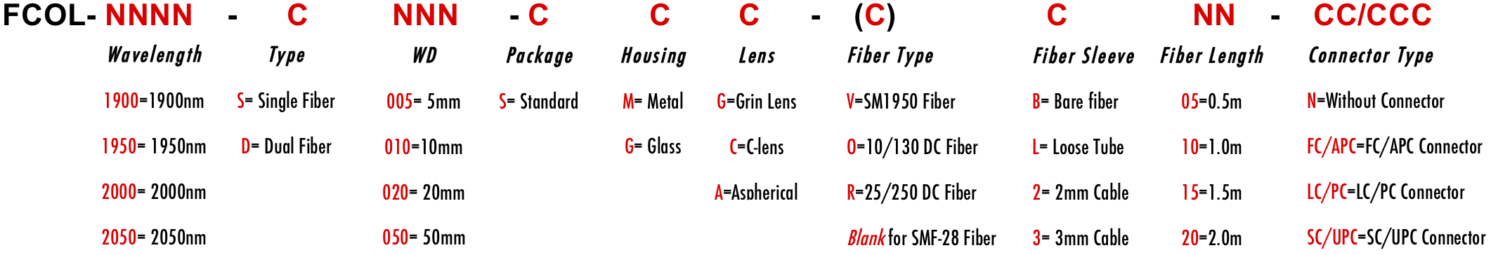 FCOL 1900nm 1880nm 1920nm 1885nm 1890nm 1905nm 1910nm 1915nm polarization insensitive optical fiber collimator with collimated gaussian beam for free space output or space doublet to collect light from free space with Grin lens C spherical lens and aspherical lens colimador de fibra óptica insensible a la polarización con haz gaussiano colimado para salida de espacio libre o doblete espacial para recoger luz del espacio libre con lente esférica C y lente asférica de lente Grin colimador de fibra óptica insensível à polarização com feixe gaussiano colimado para saída de espaço livre ou dupleto de espaço para coletar luz do espaço livre com lente Grin lente esférica C e lente asférica polarisaatioherkkä optisen kuidun kollimaattori, jossa on kollimoitu gaussinen säde vapaan tilan tuottamiseksi tai avaruusdubletti valon keräämiseksi vapaasta tilasta Grin-linssin pallomaisella linssillä ja asfäärisellä linssillä polarisationsunempfindlicher Lichtleiterkollimator mit kollimiertem Gaußschen Strahl für die Ausgabe im freien Raum oder Raumdublett zum Sammeln von Licht aus dem freien Raum mit der sphärischen Linse C und der asphärischen Linse der Grin-Linse C Collimateur à fibre optique insensible à la polarisation avec faisceau gaussien collimaté pour une sortie d'espace libre ou doublet d'espace pour collecter la lumière de l'espace libre avec lentille Grin C lentille sphérique et lentille asphérique kolimator ?wiat?owodowy niewra?liwy na polaryzacj? ze skolimowan? wi?zk? Gaussa zapewniaj?c? wyj?cie w wolnej przestrzeni lub dublet kosmiczny do zbierania ?wiat?a z wolnej przestrzeni za pomoc? soczewki sferycznej Grin C i soczewki asferycznej collimatore in fibra ottica insensibile alla polarizzazione con fascio gaussiano collimato per l'uscita nello spazio libero o doppietto nello spazio per raccogliere la luce dallo spazio libero con lente Grin C lente sferica e lente asferica SMF-28 SMF28 SM1950 LMA 8/125um 10/125um 10/130um 20/125um 20/130um 25/250um SC Single Clad Cladding DC Double Clad 3-port Y Type