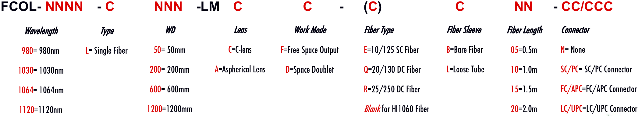 FCOL 1040nm 1020nm 1060nm 1025nm 1030nm 1035nm 1036nm. 1045nm 1050nm 1053nm 1056nm 1055nm polarization insensitive optical fiber collimator with collimated gaussian beam for free space output or space doublet to collect light from free space with Grin lens C spherical lens and aspherical lens colimador de fibra óptica insensible a la polarización con haz gaussiano colimado para salida de espacio libre o doblete espacial para recoger luz del espacio libre con lente esférica C y lente asférica de lente Grin colimador de fibra óptica insensível à polarização com feixe gaussiano colimado para saída de espaço livre ou dupleto de espaço para coletar luz do espaço livre com lente Grin lente esférica C e lente asférica polarisaatioherkkä optisen kuidun kollimaattori, jossa on kollimoitu gaussinen säde vapaan tilan tuottamiseksi tai avaruusdubletti valon keräämiseksi vapaasta tilasta Grin-linssin pallomaisella linssillä ja asfäärisellä linssillä polarisationsunempfindlicher Lichtleiterkollimator mit kollimiertem Gaußschen Strahl für die Ausgabe im freien Raum oder Raumdublett zum Sammeln von Licht aus dem freien Raum mit der sphärischen Linse C und der asphärischen Linse der Grin-Linse C Collimateur à fibre optique insensible à la polarisation avec faisceau gaussien collimaté pour une sortie d'espace libre ou doublet d'espace pour collecter la lumière de l'espace libre avec lentille Grin C lentille sphérique et lentille asphérique kolimator ?wiat?owodowy niewra?liwy na polaryzacj? ze skolimowan? wi?zk? Gaussa zapewniaj?c? wyj?cie w wolnej przestrzeni lub dublet kosmiczny do zbierania ?wiat?a z wolnej przestrzeni za pomoc? soczewki sferycznej Grin C i soczewki asferycznej collimatore in fibra ottica insensibile alla polarizzazione con fascio gaussiano collimato per l'uscita nello spazio libero o doppietto nello spazio per raccogliere la luce dallo spazio libero con lente Grin C lente sferica e lente asferica HI1060 1060XP LMA 6/125um 10/125um 10/130um 12/125um 12/130um 15/125um 15/130um 20/125um 20/130um 25/250um 30/250um SC Single Clad Cladding DC Double Clad 3-port Y Type