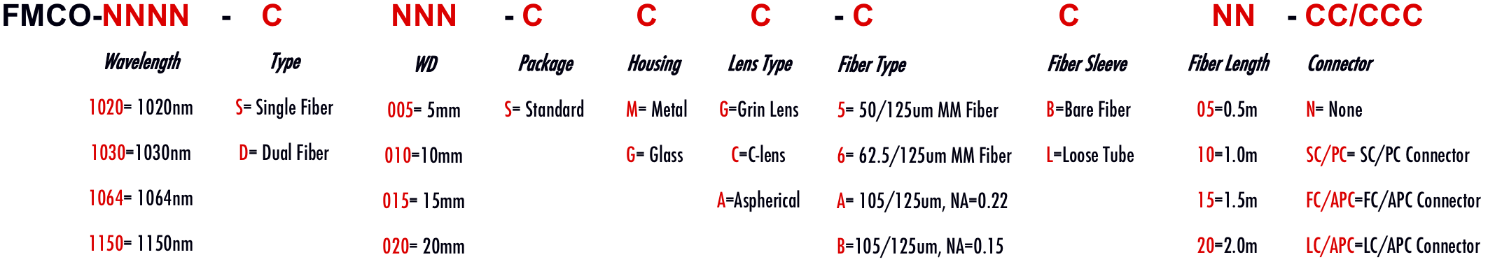FMCO 1150nm 1130nm 1200nm 1135nm 1140nm 1145nm 1155nm 1160nm 1165nm 1170nm 1175nm 1180nm 1185nm 1190nm 1195nm polarization insensitive optical fiber collimator with collimated gaussian beam for free space output or space doublet to collect light from free space with Grin lens C spherical lens and aspherical lens colimador de fibra óptica insensible a la polarización con haz gaussiano colimado para salida de espacio libre o doblete espacial para recoger luz del espacio libre con lente esférica C y lente asférica de lente Grin colimador de fibra óptica insensível à polarização com feixe gaussiano colimado para saída de espaço livre ou dupleto de espaço para coletar luz do espaço livre com lente Grin lente esférica C e lente asférica polarisaatioherkkä optisen kuidun kollimaattori, jossa on kollimoitu gaussinen säde vapaan tilan tuottamiseksi tai avaruusdubletti valon keräämiseksi vapaasta tilasta Grin-linssin pallomaisella linssillä ja asfäärisellä linssillä polarisationsunempfindlicher Lichtleiterkollimator mit kollimiertem Gaußschen Strahl für die Ausgabe im freien Raum oder Raumdublett zum Sammeln von Licht aus dem freien Raum mit der sphärischen Linse C und der asphärischen Linse der Grin-Linse C Collimateur à fibre optique insensible à la polarisation avec faisceau gaussien collimaté pour une sortie d'espace libre ou doublet d'espace pour collecter la lumière de l'espace libre avec lentille Grin C lentille sphérique et lentille asphérique kolimator ?wiat?owodowy niewra?liwy na polaryzacj? ze skolimowan? wi?zk? Gaussa zapewniaj?c? wyj?cie w wolnej przestrzeni lub dublet kosmiczny do zbierania ?wiat?a z wolnej przestrzeni za pomoc? soczewki sferycznej Grin C i soczewki asferycznej collimatore in fibra ottica insensibile alla polarizzazione con fascio gaussiano collimato per l'uscita nello spazio libero o doppietto nello spazio per raccogliere la luce dallo spazio libero con lente Grin C lente sferica e lente asferica Graded Index Step GIMM SIMM 50/125um 62.5/125um 105/125um NA=0.15 NA=0.22 NA=0.12 3-port Y Type