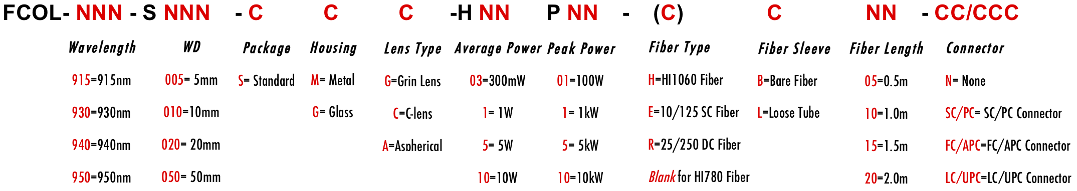 FCOL 950nm 930nm 970nm 935nm 940nm 945nm 955nm 960nm 965nm polarization insensitive optical fiber collimator with collimated gaussian beam for free space output or space doublet to collect light from free space with Grin lens C spherical lens and aspherical lens colimador de fibra óptica insensible a la polarización con haz gaussiano colimado para salida de espacio libre o doblete espacial para recoger luz del espacio libre con lente esférica C y lente asférica de lente Grin colimador de fibra óptica insensível à polarização com feixe gaussiano colimado para saída de espaço livre ou dupleto de espaço para coletar luz do espaço livre com lente Grin lente esférica C e lente asférica polarisaatioherkkä optisen kuidun kollimaattori, jossa on kollimoitu gaussinen säde vapaan tilan tuottamiseksi tai avaruusdubletti valon keräämiseksi vapaasta tilasta Grin-linssin pallomaisella linssillä ja asfäärisellä linssillä polarisationsunempfindlicher Lichtleiterkollimator mit kollimiertem Gaußschen Strahl für die Ausgabe im freien Raum oder Raumdublett zum Sammeln von Licht aus dem freien Raum mit der sphärischen Linse C und der asphärischen Linse der Grin-Linse C Collimateur à fibre optique insensible à la polarisation avec faisceau gaussien collimaté pour une sortie d'espace libre ou doublet d'espace pour collecter la lumière de l'espace libre avec lentille Grin C lentille sphérique et lentille asphérique kolimator ?wiat?owodowy niewra?liwy na polaryzacj? ze skolimowan? wi?zk? Gaussa zapewniaj?c? wyj?cie w wolnej przestrzeni lub dublet kosmiczny do zbierania ?wiat?a z wolnej przestrzeni za pomoc? soczewki sferycznej Grin C i soczewki asferycznej collimatore in fibra ottica insensibile alla polarizzazione con fascio gaussiano collimato per l'uscita nello spazio libero o doppietto nello spazio per raccogliere la luce dallo spazio libero con lente Grin C lente sferica e lente asferica HI780 780HP 5/125um 4/125um HI1060 1060XP LMA 6/125um 10/125um 10/130um 12/125um 12/130um 15/125um 15/130um 20/125um 20/130um 25/250um 30/250um SC Single Clad Cladding DC Double Clad 3-port Y Type