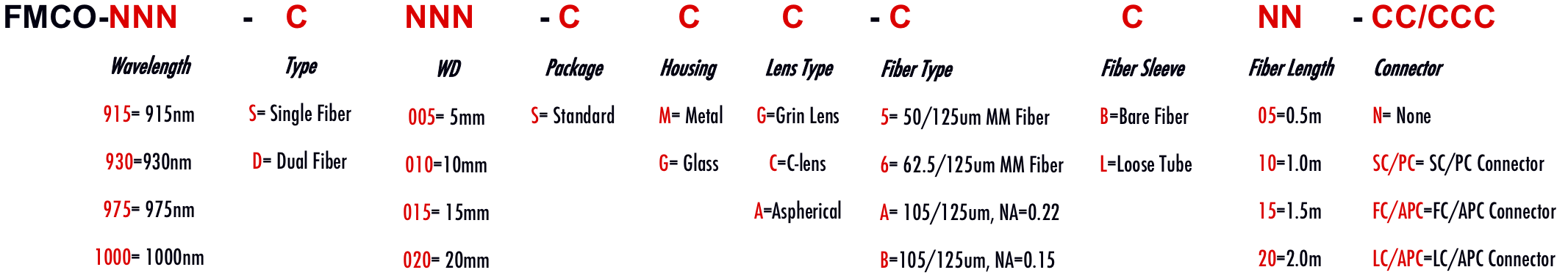 FMCO 1000nm 980nm 1020nm 985nm 990nm 995nm 1005nm 1010nm 1015nm polarization insensitive optical fiber collimator with collimated gaussian beam for free space output or space doublet to collect light from free space with Grin lens C spherical lens and aspherical lens colimador de fibra óptica insensible a la polarización con haz gaussiano colimado para salida de espacio libre o doblete espacial para recoger luz del espacio libre con lente esférica C y lente asférica de lente Grin colimador de fibra óptica insensível à polarização com feixe gaussiano colimado para saída de espaço livre ou dupleto de espaço para coletar luz do espaço livre com lente Grin lente esférica C e lente asférica polarisaatioherkkä optisen kuidun kollimaattori, jossa on kollimoitu gaussinen säde vapaan tilan tuottamiseksi tai avaruusdubletti valon keräämiseksi vapaasta tilasta Grin-linssin pallomaisella linssillä ja asfäärisellä linssillä polarisationsunempfindlicher Lichtleiterkollimator mit kollimiertem Gaußschen Strahl für die Ausgabe im freien Raum oder Raumdublett zum Sammeln von Licht aus dem freien Raum mit der sphärischen Linse C und der asphärischen Linse der Grin-Linse C Collimateur à fibre optique insensible à la polarisation avec faisceau gaussien collimaté pour une sortie d'espace libre ou doublet d'espace pour collecter la lumière de l'espace libre avec lentille Grin C lentille sphérique et lentille asphérique kolimator ?wiat?owodowy niewra?liwy na polaryzacj? ze skolimowan? wi?zk? Gaussa zapewniaj?c? wyj?cie w wolnej przestrzeni lub dublet kosmiczny do zbierania ?wiat?a z wolnej przestrzeni za pomoc? soczewki sferycznej Grin C i soczewki asferycznej collimatore in fibra ottica insensibile alla polarizzazione con fascio gaussiano collimato per l'uscita nello spazio libero o doppietto nello spazio per raccogliere la luce dallo spazio libero con lente Grin C lente sferica e lente asferica Graded Index Step GIMM SIMM 50/125um 62.5/125um 105/125um NA=0.15 NA=0.22 NA=0.12 3-port Y Type