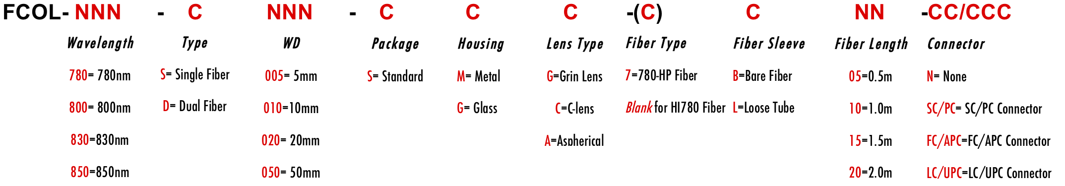 FCOL 780nm 760nm 800nm 765nm 766nm 770nm 775nm 785nm 790nm 793nm 795nm polarization insensitive optical fiber collimator with collimated gaussian beam for free space output or space doublet to collect light from free space with Grin lens C spherical lens and aspherical lens colimador de fibra óptica insensible a la polarización con haz gaussiano colimado para salida de espacio libre o doblete espacial para recoger luz del espacio libre con lente esférica C y lente asférica de lente Grin colimador de fibra óptica insensível à polarização com feixe gaussiano colimado para saída de espaço livre ou dupleto de espaço para coletar luz do espaço livre com lente Grin lente esférica C e lente asférica polarisaatioherkkä optisen kuidun kollimaattori, jossa on kollimoitu gaussinen säde vapaan tilan tuottamiseksi tai avaruusdubletti valon keräämiseksi vapaasta tilasta Grin-linssin pallomaisella linssillä ja asfäärisellä linssillä polarisationsunempfindlicher Lichtleiterkollimator mit kollimiertem Gaußschen Strahl für die Ausgabe im freien Raum oder Raumdublett zum Sammeln von Licht aus dem freien Raum mit der sphärischen Linse C und der asphärischen Linse der Grin-Linse C Collimateur à fibre optique insensible à la polarisation avec faisceau gaussien collimaté pour une sortie d'espace libre ou doublet d'espace pour collecter la lumière de l'espace libre avec lentille Grin C lentille sphérique et lentille asphérique kolimator ?wiat?owodowy niewra?liwy na polaryzacj? ze skolimowan? wi?zk? Gaussa zapewniaj?c? wyj?cie w wolnej przestrzeni lub dublet kosmiczny do zbierania ?wiat?a z wolnej przestrzeni za pomoc? soczewki sferycznej Grin C i soczewki asferycznej collimatore in fibra ottica insensibile alla polarizzazione con fascio gaussiano collimato per l'uscita nello spazio libero o doppietto nello spazio per raccogliere la luce dallo spazio libero con lente Grin C lente sferica e lente asferica HI780 780HP 5/125um 4/125um SC Single Clad Cladding DC Double Clad 3-port Y Type